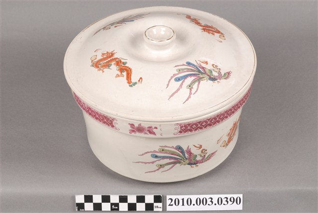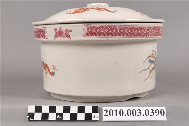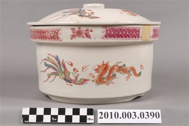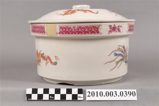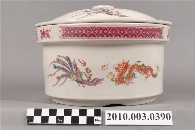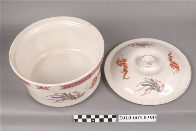 2010.003.0390 轉印白瓷彩釉龍鳳紋燉鍋