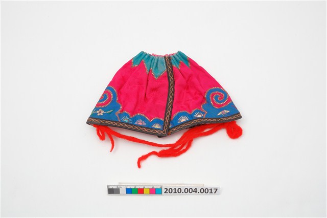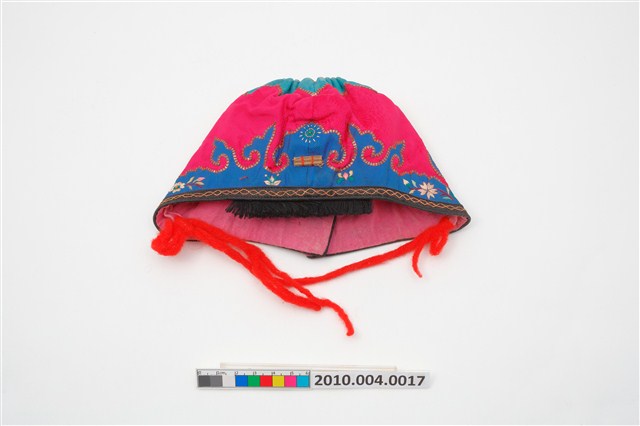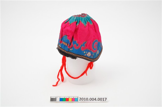 2010.004.0017 天藍桃紅寶藍三色拼布碗帽