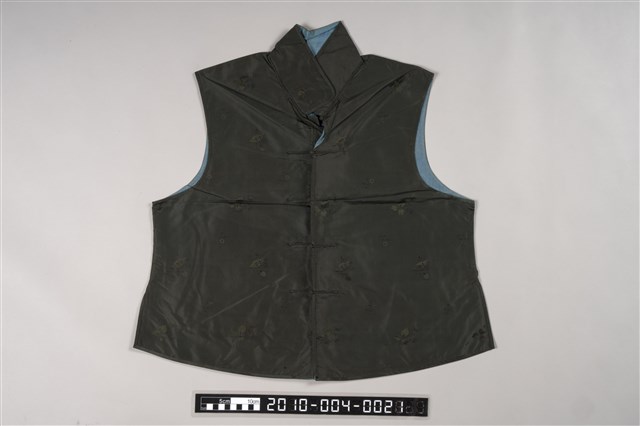 2010.004.0021 墨綠絲質緹花對襟男背心