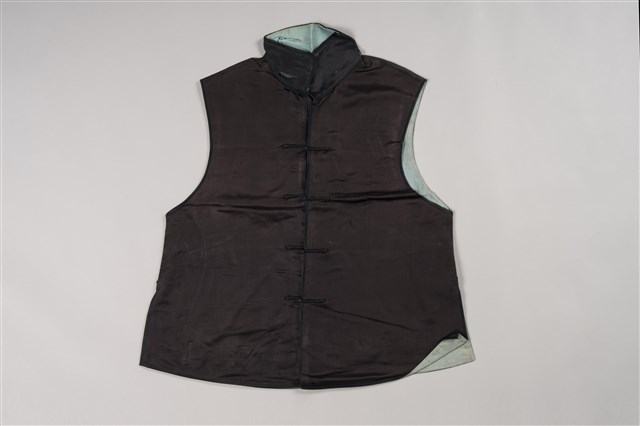 2010.004.0022 深棕色絲質緹花對襟男背心