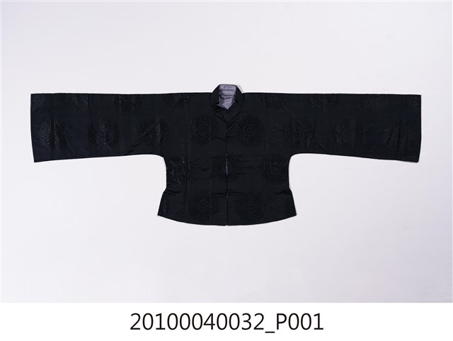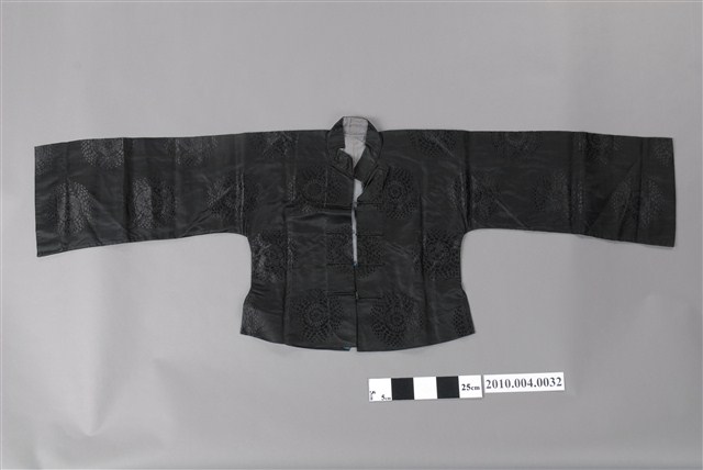 2010.004.0032 黑色絲質緹花對襟男外褂