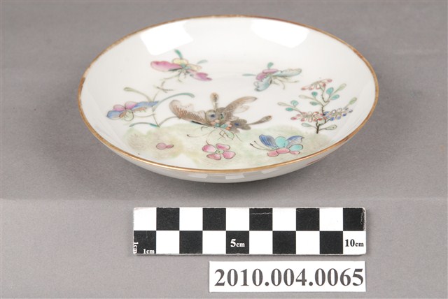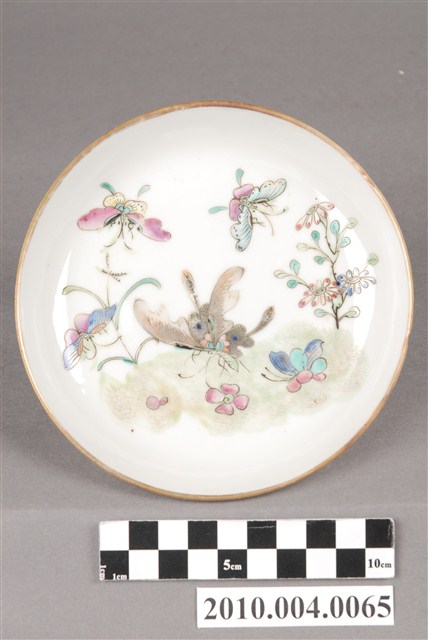 2010.004.0065 彩繪花草蝴蝶鑲金邊瓷盤