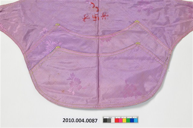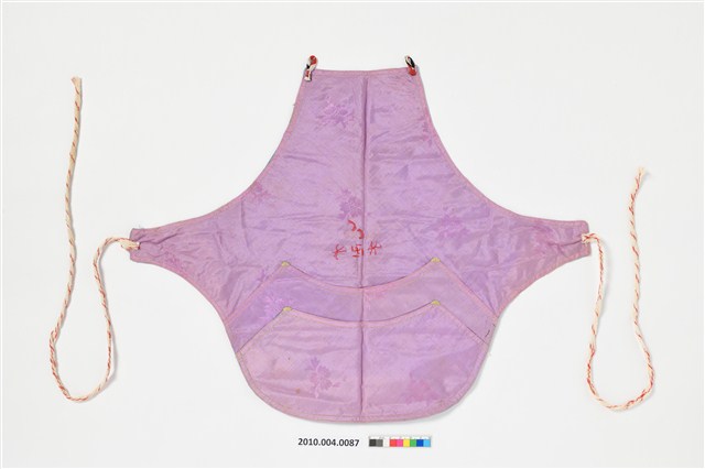 2010.004.0087 粉色緹花地繡花下端寬形附綁帶肚兜