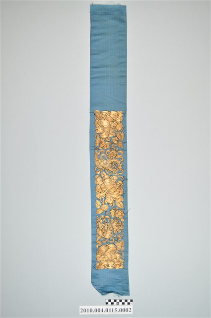 2010.004.0115 藍絲緞盤金釘線袖口布片組