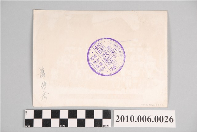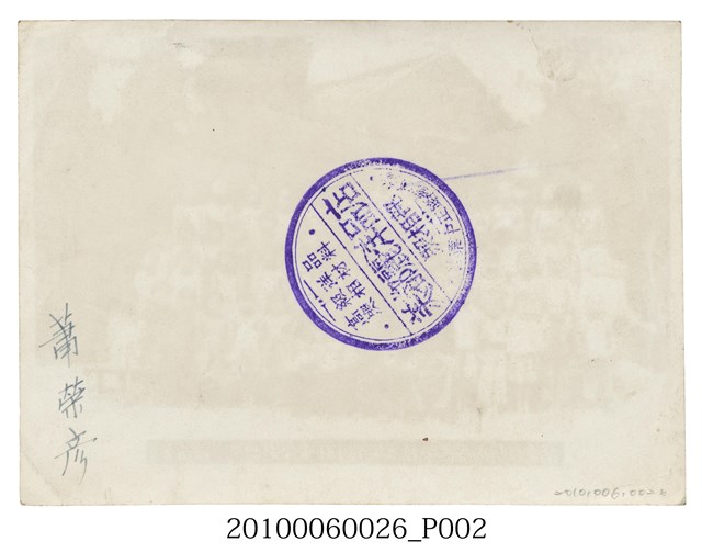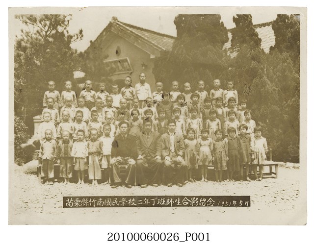 本件為苗栗縣竹南國民學校(今苗栗縣竹南國民小學)二年丁班師生合照,拍攝地點為校舍前,校舍上方可見「禮義廉恥」匾額。拍攝時間為民國40年(1951)5月,由苗栗縣美都麗洋品店照相部製作。背面有手寫「蕭榮彥」字樣。