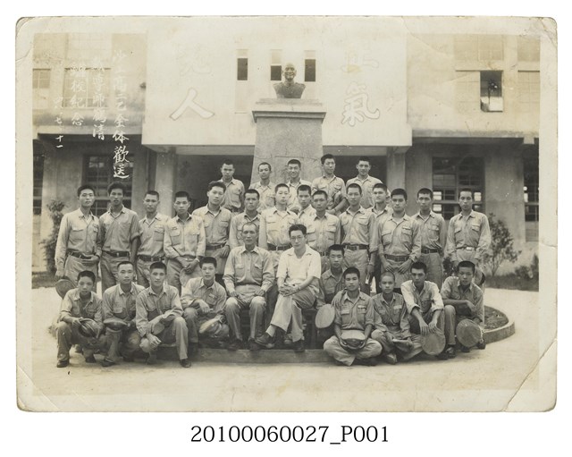 本件為臺灣省立沙鹿工業職業學校(今臺中市立沙鹿工業高級中等學校)歡送紀念照,拍攝地點為校舍前方蔣介石半身銅像前。拍攝時間為民國48年(1959)7月11日,照片左上方印有「沙工高二乙全体歡送」、「戴導師鶴清」、「離校紀念」、「四八、七、十一」字樣。