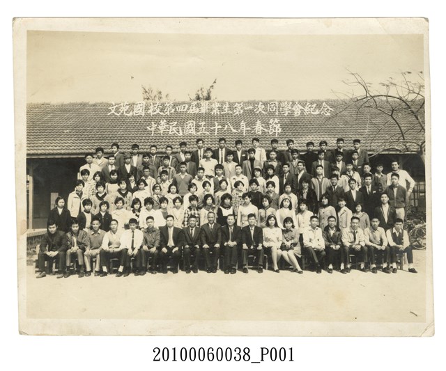 本件為苗栗縣苑裡鎮文苑國民學校(今苗栗縣文苑國民小學)第4屆畢業生第1次同學會紀念照,拍攝時間為民國58年(1969)春節。