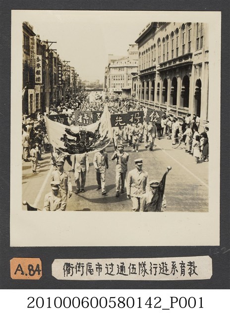 臺灣省立師範大學教育系參與青年節遊行活動隊伍留影