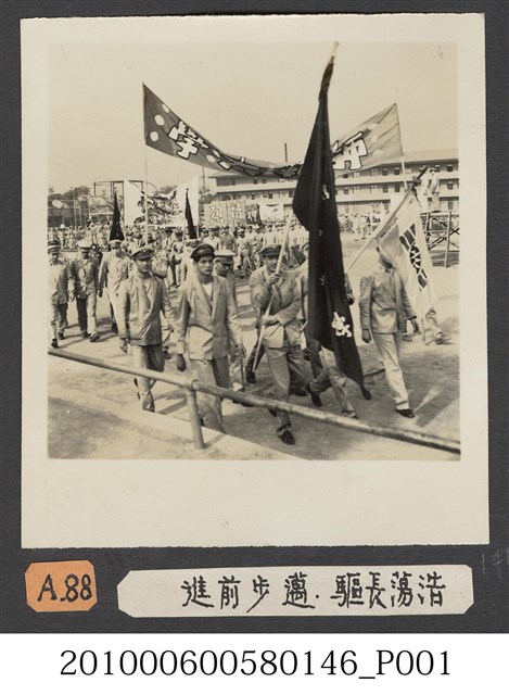 臺灣省立師範大學隊伍參加青年節遊行活動於中山堂留影