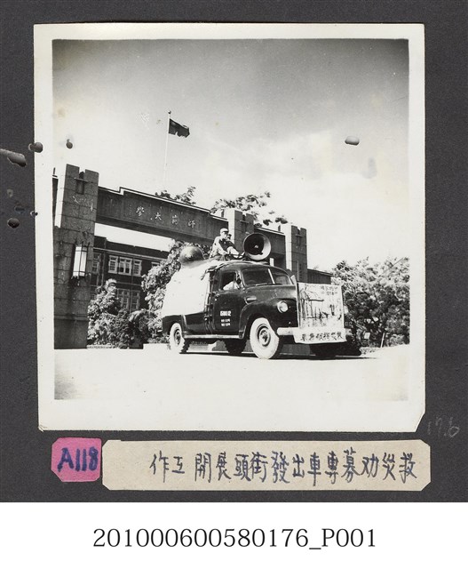 臺灣省立師範大學救助八七水災勸募廣播車照片