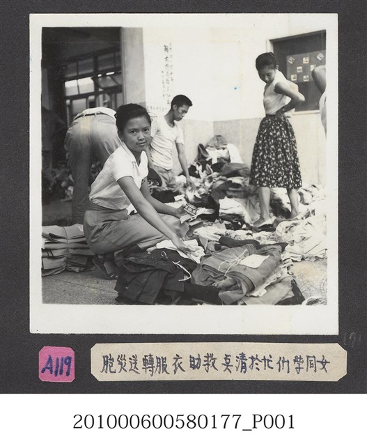 臺灣省立師範大學救助八七水災活動收集衣物照片