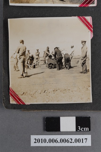 1.本物件為黑白照片,場景為工程一景,畫面為幾個人站在一片荒地上,有的穿著便服,有的穿著制服,身旁有一些工程用機具。