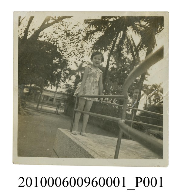 四位女子身穿傳統服飾依偎在欄杆旁合影之照片
