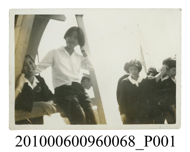 1.本文物為一群女子活動之照片,照片中女子或站或靠的在欄杆旁聊天,一旁還有些女子在活動,拍攝者紀錄女子們自然互動的過程,不刻意製造畫面。屬於物件編號2010.006.0096「屏東女中林德泉老師之家庭相簿」內的相片。2.照片人物據鄭冠榮老師、王德明老師、陳萬足女士之訪談,推斷為屏東女中的女學生們在校園的一隅。