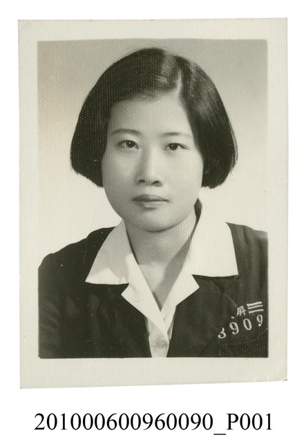 1.本文物為著屏女制服學號3909之女子半身正面照,照片中女子身穿屏女制服,於左胸口位置繡有屏女字樣及學號3909,身體朝向正面,眼神直視前方,拍攝胸口以上半身正面照。屬於物件編號2010.006.0096「屏東女中林德泉老師之家庭相簿」內的相片。2.照片人物據鄭冠榮老師、王德明老師、陳萬足女士之訪談,其學號應屬於民國40年代的學生。3.屏東女中創建於昭和7年(1932)4月1日,校名為「高雄州立屏東高等女學校」,設置目的為給臺糖日籍員工的子女就讀,修業年限為4年。戰後曾設立初中部、高中部。現今為國