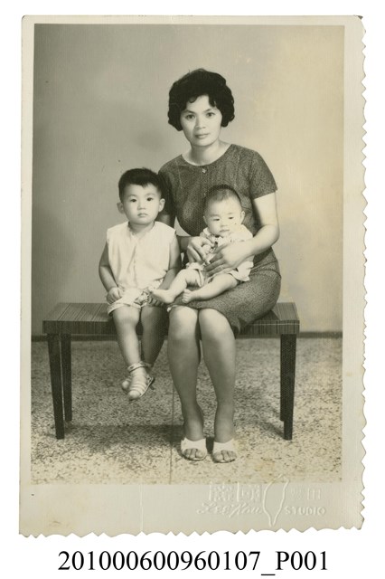二位女子於臺灣省第二十一屆全省運動會壘球比賽場活動拱門前合影之照片