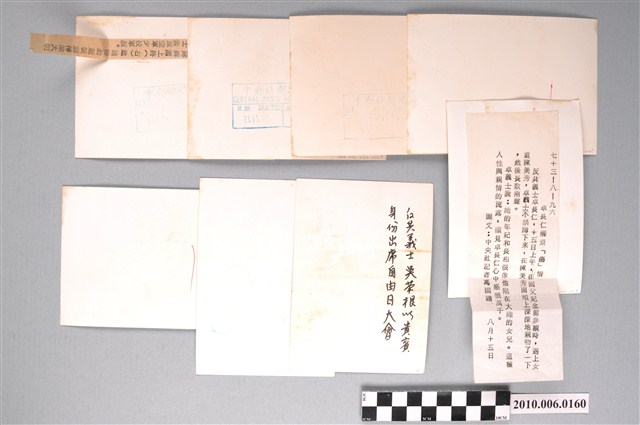 本物件為一系列黑白照片組,主題為吳榮根以及卓長仁兩位「反共義士」的系列照片,部分照片背面寫有此照片的主題內容,或是中央社新聞照片的印章印。 本物件刊載兩位在「反共政策」下被塑造出來的「反共義士」:吳榮根與卓長仁。吳榮根原為中國人民解放軍飛行員,於1982年10月駕駛米格機從中國山東飛往南韓漢城,最後飛抵臺灣,吳榮根的「投誠」受到國民黨政府的大肆歡迎與宣傳。卓長仁則是於1983年,因在中國犯法,於是夥同姜洪軍、王豔大、安偉建、吳雲飛及高東萍劫持一架由瀋陽飛往上海的班機,並於韓國降落。六人於韓國服刑完畢之後,便來到臺灣接受國民黨政府的熱烈歡迎,甚至受到當時的總統蔣經國的接見。後卓長仁與姜洪軍、施小寧共同策劃綁架勒索,最終三人被捕遭到槍決。 本物件提到的「反共義士」一詞最早運用於韓戰期間投奔臺灣的解放軍士兵,後多用以指稱從中國來到臺灣「投誠」的人士。在國際上冷戰背景下,國民黨政府透過上述概念,宣傳反共立場。這些海外人士在來臺之後,多半備受禮遇,並被加以宣傳,但也有部分人士因為身分特殊,即使在解嚴之後仍無法返回中國大陸,客死他鄉(王珮蓉,2014,186-188)。