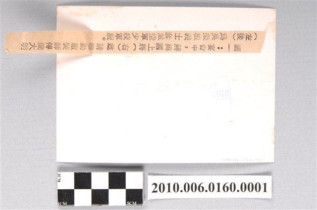 本物件為一張黑白相片,相片中右方為時任中華民國國軍上將的蔣緯國,中間人物為1982年從中國駕戰機抵台的吳榮根,吳榮根身後是聯勤服裝的師傅簡大名,且正在為吳榮根套量軍服尺寸,照片背面則貼有一紙條說明此張照片的主題,此照片的活動為「西太平洋安全與合作」會議代表宴會,地點在臺北聯勤外事俱樂部。 吳榮根原為中國人民解放軍飛行員,於1982年10月駕駛米格機從中國山東飛往南韓漢城,最後飛抵臺灣,吳榮根的「投誠」受到國民黨政府的大肆歡迎與宣傳,其中包含:吳榮根與鄧麗君的見面,另還頒發五千兩黃金以表揚吳榮根。 本物件提到的「反共義士」一詞最早運用於韓戰期間投奔臺灣的解放軍士兵,後多用以指稱從中國來到臺灣「投誠」的人士。在國際上冷戰背景下,國民黨政府透過上述概念,宣傳反共立場。這些海外人士在來臺之後,多半備受禮遇,並被加以宣傳,但也有部分人士因為身分特殊,即使在解嚴之後仍無法返回中國大陸,客死他鄉(王珮蓉,2014,186-188)。