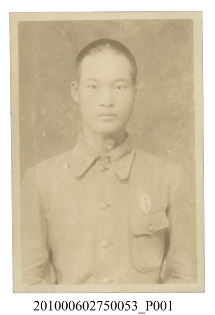 1.本文物為蔡海塗半身正面照。此物件為一張直式黑白照片,照片斑駁,有汙漬。照片內理平頭男子拍攝半身照,身穿臺中一中制服,左胸口縫有姓名牌「蔡海塗」,表情嚴肅眼神直視鏡頭。屬於2010.006.0275相簿內容之一。2.日治時期大正2年(1913),臺灣熱心教育人士林烈堂、林熊徵、林献堂、辜顯榮、蔡蓮舫等人為了喚醒台灣人民意識及文化覺醒;經由林烈堂捐土地1萬5千坪,加上其他創校委員奔走勸募,共募得24萬8千8百20圓,於大正4年(1915)創立本校,名為臺灣公立臺中中學,於是,第一所培育臺灣青年的學校終於誕生。民國89年2月1日改制為國立臺中第一高級中學。