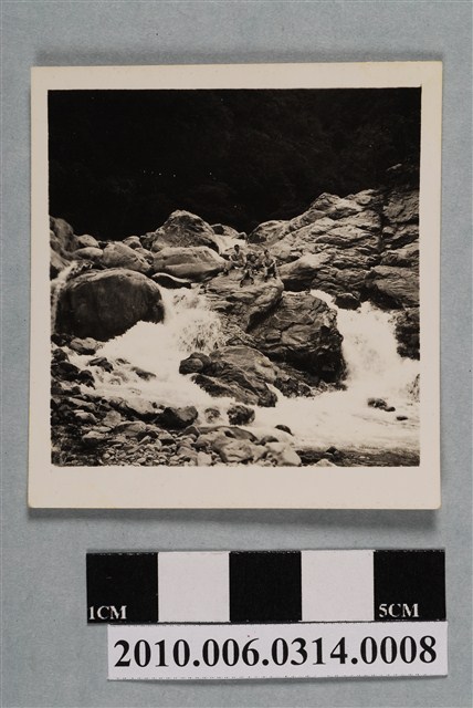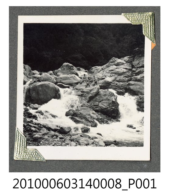 1.本物件為3人合照。照片中主景為滿布巨大石頭,水流湍急的大甲溪谷,有3名著軍官服男子坐在溪流中間的巨石,石頭兩側為小型瀑布。2.東西橫貫公路西段主要是沿大甲溪上游開鑿。東西橫貫公路又稱中部橫貫公路,簡稱中橫,西起臺中東勢,東至花蓮太魯閣,公路編號臺8線。其早期是原住民的狩獵路徑,日治時期將有些路段開闢為「理蕃道路」,至日治末期,部分道路可通行汽車。戰後,政府在美援支援下,決定建立東西線橫貫道路工程。1951年開始進行初勘,1956年6月完成探勘;同年7月自東、西兩端同時開工,由臺灣省公路局成立的「橫貫公路工程總處」負責工程事宜,實際由行政院國軍退除役官兵就業輔導委員會的榮民工程總隊及工兵、步兵,以及部分軍事犯、民工為施工主力,1960年5月通車,全長190餘公里。除主線外,另興建梨山至宜蘭的宜蘭支線(臺7甲),大禹嶺至霧社的霧社支線(臺14甲)。