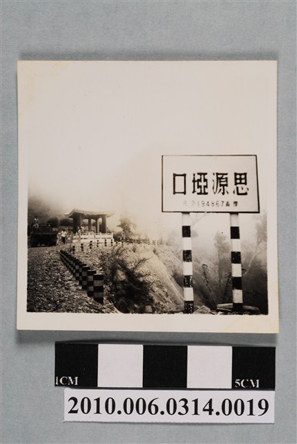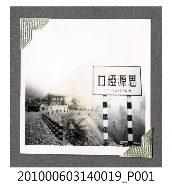 1.本物件為東西橫貫公路宜蘭支線思源埡口路段的照片,照片左側為道路縱貫,右側近處為地名牌,地名牌中央由右而左「思源埡口」4字,4字下方書寫「標高1948.67公尺」。左側道路遠處有1座涼亭,涼亭旁停放1輛軍用卡車。2.思源埡口位於東西橫貫公路宜蘭支線,為大甲溪、蘭陽溪兩大水系的分水嶺。東西橫貫公路又稱中部橫貫公路,簡稱中橫,西起臺中東勢,東至花蓮太魯閣,公路編號臺8線。其早期是原住民的狩獵路徑,日治時期將有些路段開闢為「理蕃道路」,至日治末期,部分道路可通行汽車。戰後,政府在美援支援下,決定建立東西線橫貫道路工程。1951年開始進行初勘,1956年6月完成探勘;同年7月自東、西兩端同時開工,由臺灣省公路局成立的「橫貫公路工程總處」負責工程事宜,實際由行政院國軍退除役官兵就業輔導委員會的榮民工程總隊及工兵、步兵,以及部分軍事犯、民工為施工主力,1960年5月通車,全長190餘公里。除主線外,另興建梨山至宜蘭的宜蘭支線(臺7甲),大禹嶺至霧社的霧社支線(臺14甲)。其中宜蘭支線起點原在羅東,終點在梨山,連接中橫本線。1966年北部橫貫公路通車後,起點改在宜蘭縣大同鄉的百韜橋,全長約74公里。