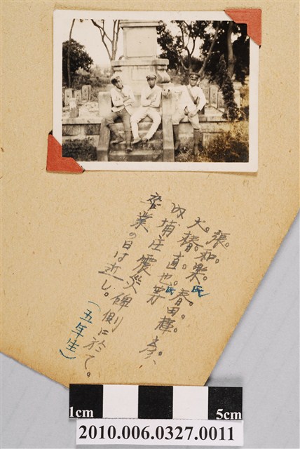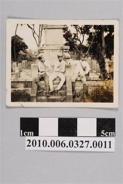 2010.006.0327.0011 張和樂等三人大震災內埔庄殉難者追悼碑前合照