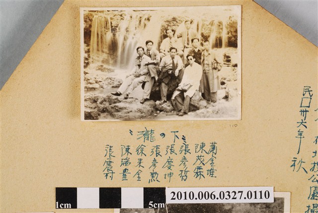 2010.006.0327.0110 張震村等八人於北投公園瀑布下合照