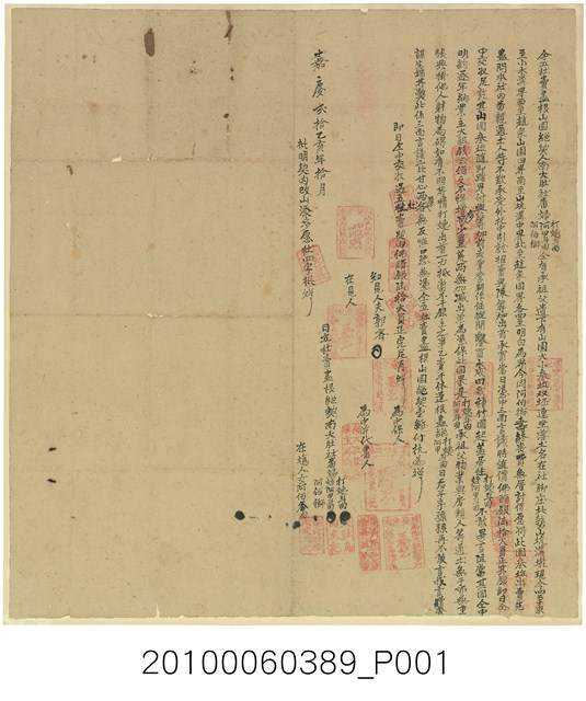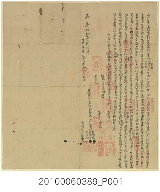 2010.006.0389 嘉慶20年南大肚社阿姨斗肉等三人仝立杜賣盡根山園絕契字