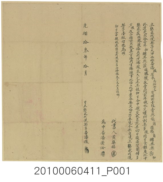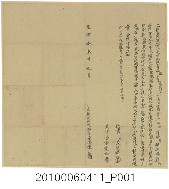 2010.006.0411 光緒13年大甲西社番潘振立墾求找洗契字
