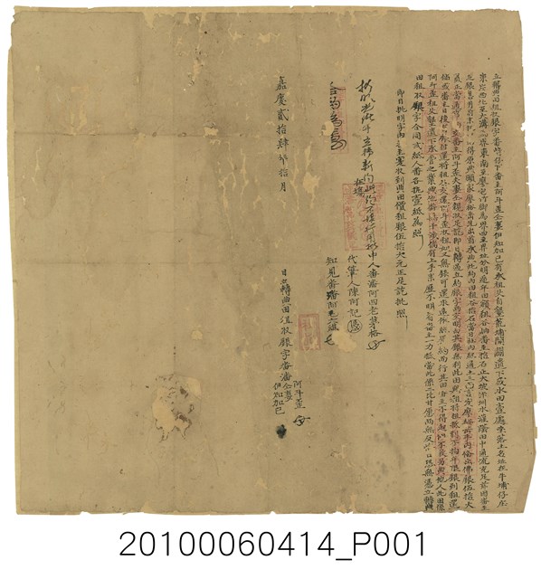 2010.006.0414 嘉慶24年番崎仔下番主阿斗歪等立轉典田租收銀契字