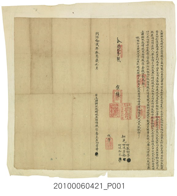 2010.006.0421 同治12年蔴裡蘭社番后向孝希立贌耕收過磧地並胎借銀契字