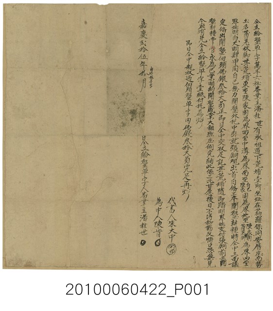 2010.006.0422 嘉慶25年萬斗六社番業主潘桂世仝立給墾單字