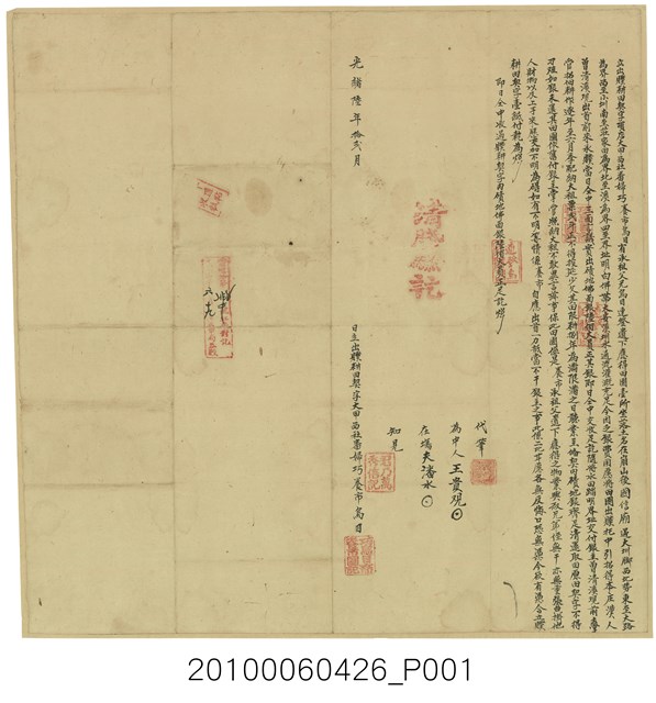 2010.006.0426 光緒6年大甲西社番婦巧養市烏目給曾清溪立出贌耕田契字