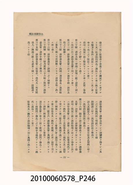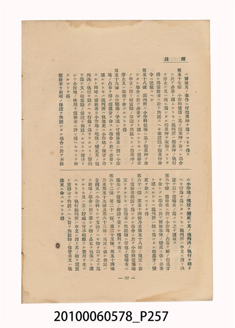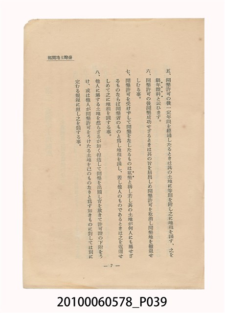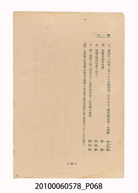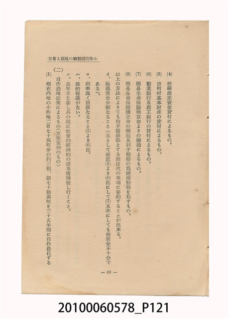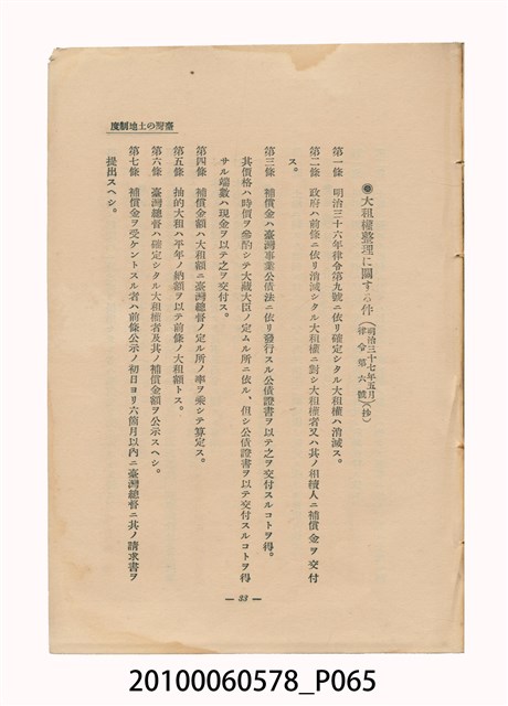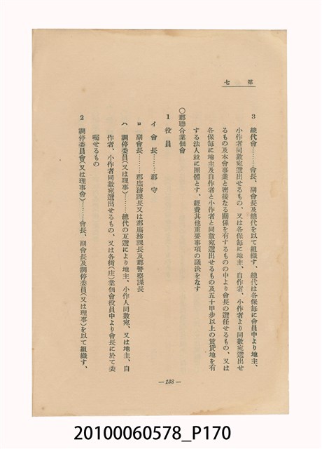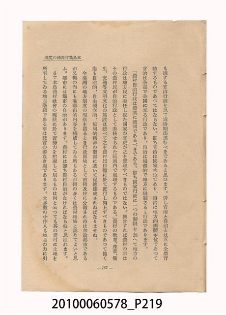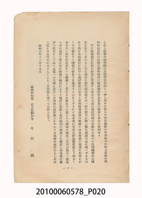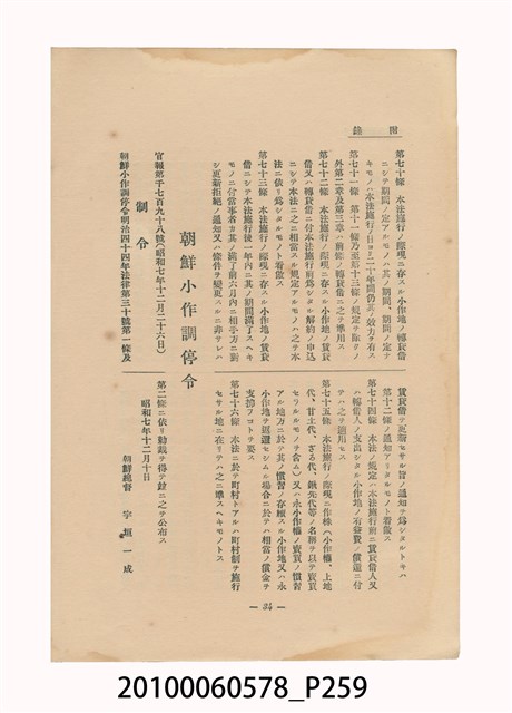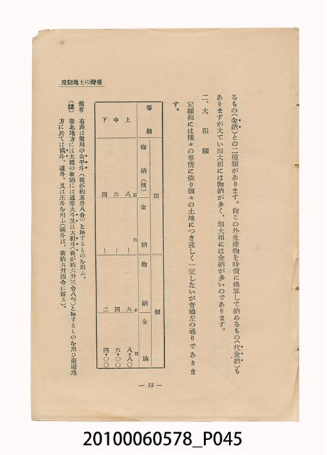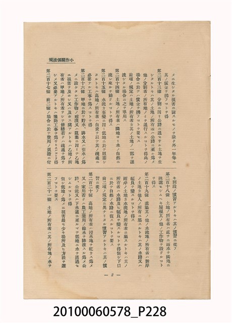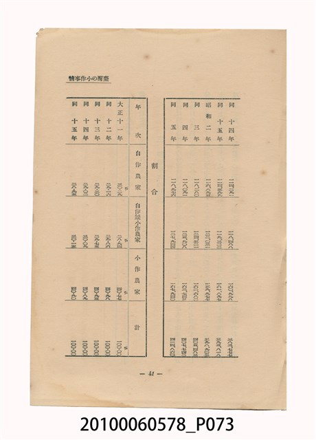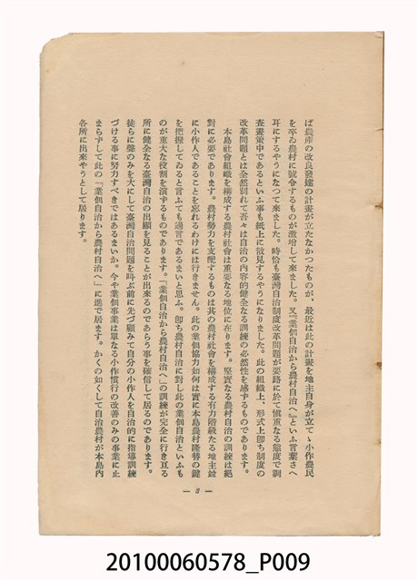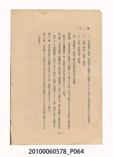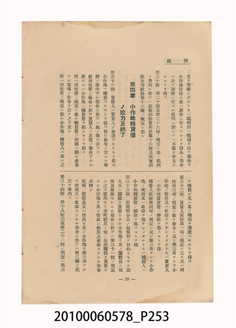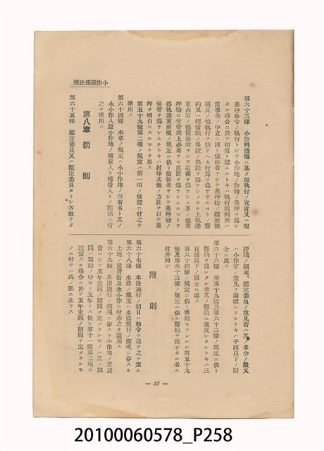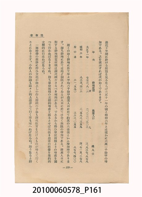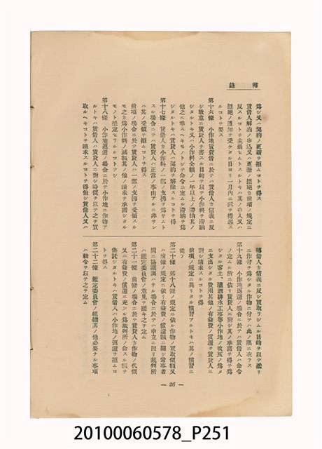 本物件為臺灣的小作問題,由茂野信一和林朝卿共同編著,吉村商會出版部於昭和8年12月25日發行。「小作」為佃農、自耕農之意。該書介紹臺灣農業問題及發展,包含臺灣土地的開墾與土地制度發展,大小租戶與佃農的形成,小作農業的發展與影響等。本件與登錄號2010.015.0093藏品相同。