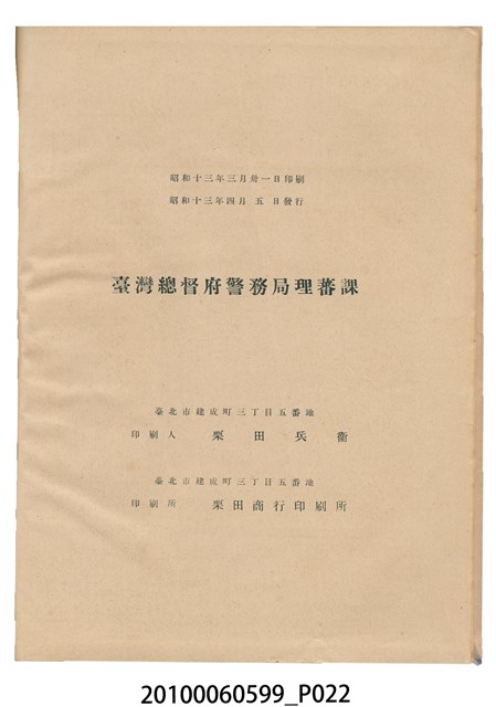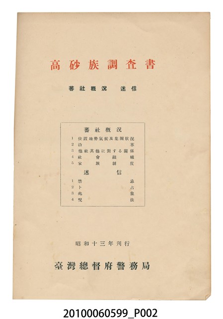 2010.006.0599 臺灣總督府警務局理蕃課編《高砂族調查書:蕃社概況と迷信》