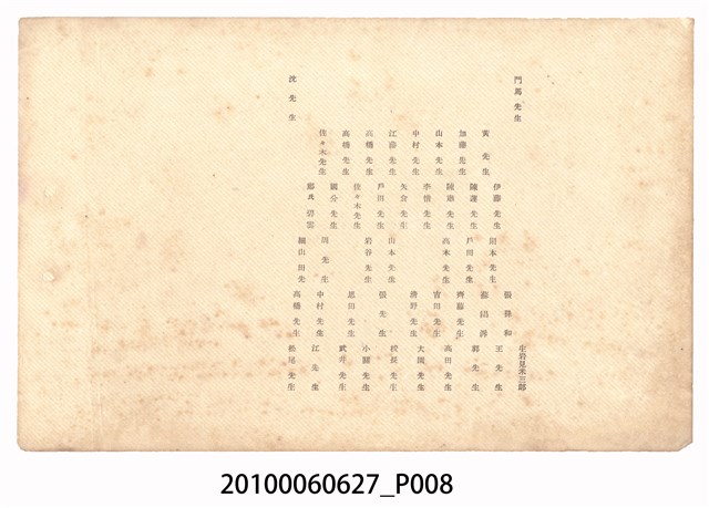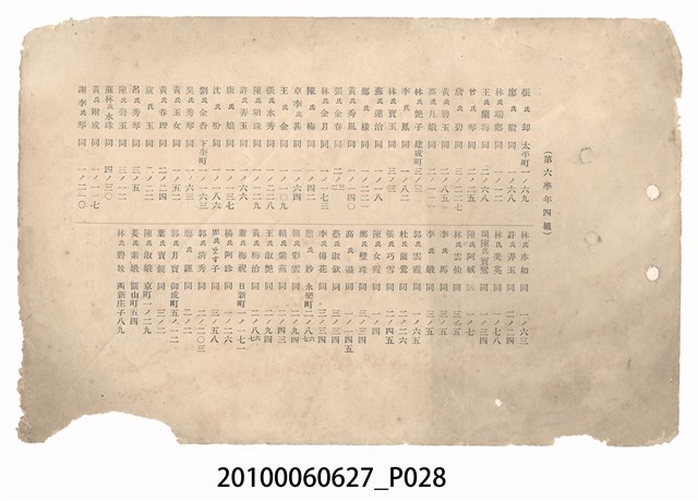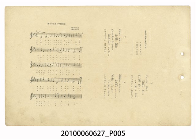 本件為臺北市蓬萊公學校第28屆畢業紀念冊,製作時間為昭和14年(1939)3月,由臺北市榮町安武寫真館拍攝,朝日寫真製版印刷所印製。內容包括:臺灣神社照、芝山巖、畢業生團體照、漢口陷落遊行、臨海教育、學藝會、慰問袋製作、校舍照、合同遊戲、校外班訓練等照片,尾頁印有教職員名單畢業生名單。蓬萊公學校(今臺北市蓬萊國民小學),其前身為「大稻埕公學校女子分校」,創立於1910年,隔年獨立為「大稻埕女子公學校」,並使用大稻埕公學校西側校地(今臺北市永樂國民小學)授課,1917年遷至現今校址,1922年改名為「蓬萊公學校」。關於該校名沿革,如下:1910年,大稻埕公學校女子分校;1911年,大稻埕女子公學校;1922年,蓬萊公學校;1941年,蓬萊國民學校;1968年,臺北市建成區蓬萊國民小學;1990年,臺北市大同區蓬萊國民小學。