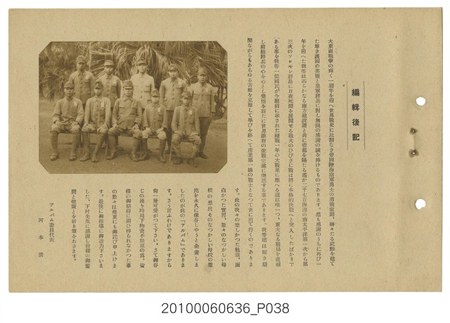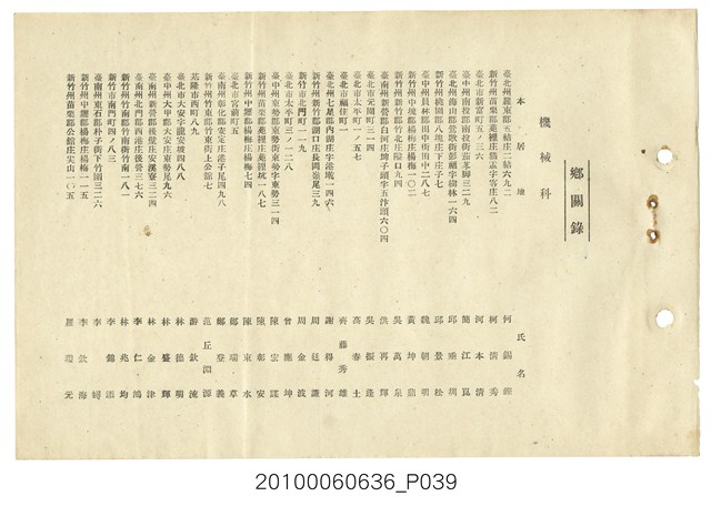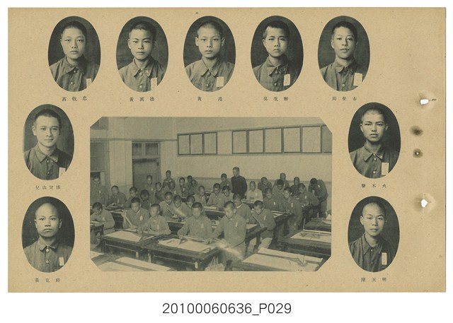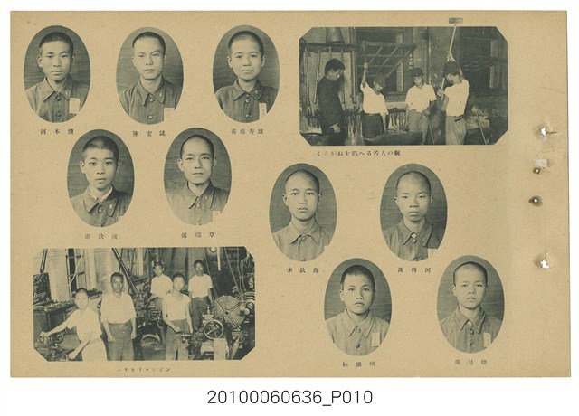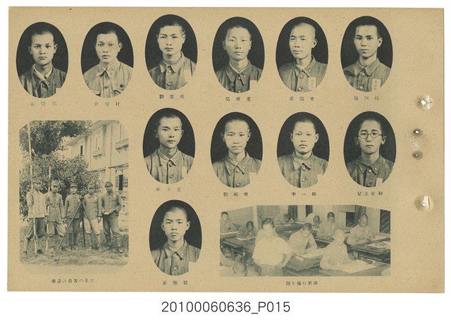 臺灣總督府臺北第一工業技術練習生養成所卒業紀念寫真帖,為今日臺北科技大學之前身,並且是臺北公務員練成所,寫真帖除了所長、老師、學生合照及通訊錄外,有許多珍貴照片,如飛機製造、土木測量、機械車床、測量儀器、化學實驗、電機技術、製圖工廠實習、礦物研究測量等工科照片數十張,十分珍貴。