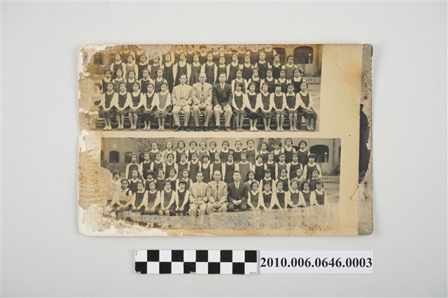 本件為福星國民學校畢業班級團體照,收於《臺北市城中區福星國民學校第11屆畢業紀念冊》內。本頁共有上、下2張照片,拍攝地點為學校操場,照片中前排右一教職員推測為該班級任導師。
