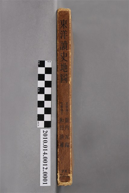 本件為《 東洋讀史地圖 》書盒。 《 東洋讀史地圖 》,箭內亙著,和田清補,地圖印刷者精版印刷株式會社,活版印刷者大日本印刷株式會社,發行所東京富山房,昭和16(1941)年1月18日印刷、發行。