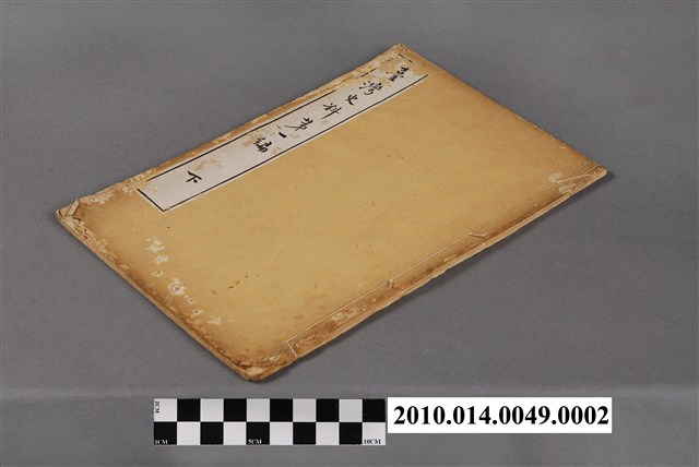 本物件為江馬達三郎譯述《臺灣史料第一編》下卷,封面色調偏黃,右側有線裝,左側方框有些毀損,可辨識字樣臺灣史料第一編下,書背處沒有任何字樣,封底色調偏黃,左側有線裝。內容記述有清領時期臺灣之事件,包含朱一貴事件、林爽文事件等;目錄紀錄於上卷下卷、施(琅)將軍ノ劉國軒ヲ澎湖ニ破ル一節、施(世驃)提督ノ朱一貴ヲ臺灣ニ破ル一節、臺灣史料第一編目錄、藍(廷珍)提督同上、藍(元枚)提督ノ林爽文ヲ臺灣ニ破ル一節、藍(理)軍門ノ劉國軒ヲ臺灣ニ破ル一節、臺灣北路ノ愚民ヲ諭ス檄、臺灣ノ城工緩フスベキ議、一臺灣鎮ハ澎ニ移スベカラザルヲ論ズル書、趙制軍ニ覆シ臺灣ノ兵事ヲ言フ書、臺灣ヲ平定スル略述。書籍末頁資訊右側明治廿八年十二月一日印刷(西元1895年12月1日印刷)、明治廿八年十二月五日發行(西元1895年12月5日發行)、右下方框中以紅色長方形印章蓋有定價參拾錢;左半部分上方有1正方形框中有版權所有,下方文字由右至左譯述兼發行者江馬達三郎、印刷者柿原太郎吉、發行所村上勘兵衛等。