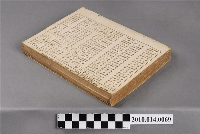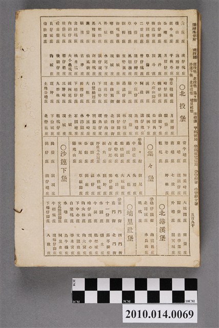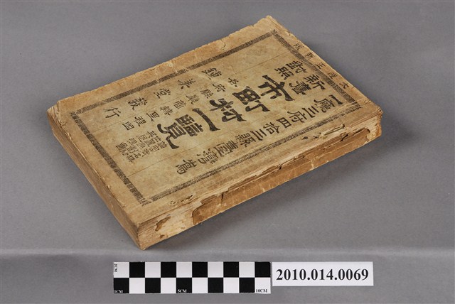 本件為鍾美堂發行《新舊對照市町村一覽》,依據封面「一廳三府四拾三縣臺灣島」字樣推測應為日治時期,本書為大改正新版的版本,內容有新舊對照、諸官衙名稱為治區劃以及各府縣廳管轄等內容。本件保存狀態稍差,書籍有黃化、蛀蝕以及掉頁等狀況,書及有線裝痕跡,但有脫落。由目次中資料可知三府為「東京府、大阪府以及京都府」,東京府,是日本曾存在的1個一級行政區,為今日東京都之前身。存續期間為1868年(慶應4年、明治元年)至1943年(昭和18年)。一廳所指為「北海道廳」。