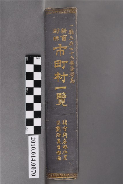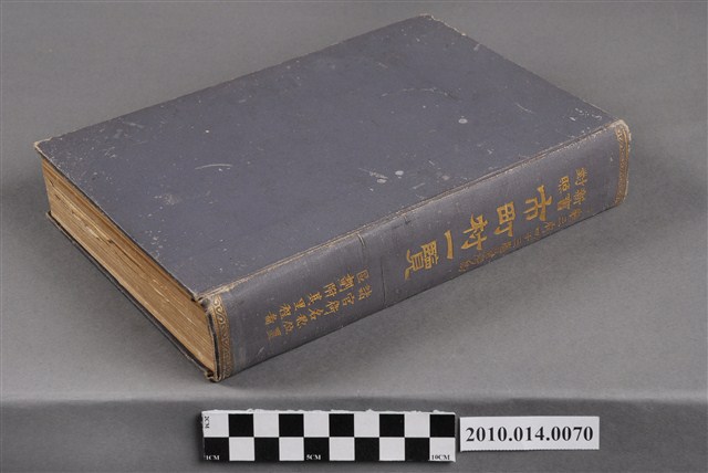 本件為鍾美堂發行《新舊對照市町村一覽》一書,由中村由松編輯,封面有「一廳三府四拾三縣臺灣島」字樣,本書為藍色精裝本,封面封底無文字,僅書背處寫書明以及「諸官衙名稱位置區劃附其里程圖」字樣。由目次中資料可知三府為「東京府、大阪府以及京都府」,東京府,是日本曾存在的1個一級行政區,為今日東京都之前身。存續期間為1868年(慶應4年、明治元年)至1943年(昭和18年)。一廳所指為「北海道廳」。