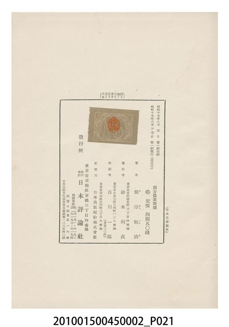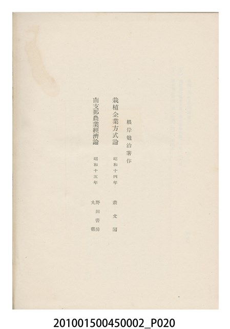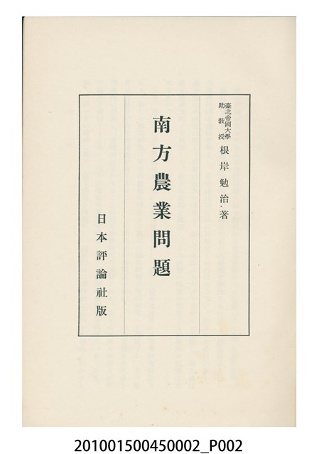 2010.015.0045.0002 根岸勉治著《南方農業問題》書本
