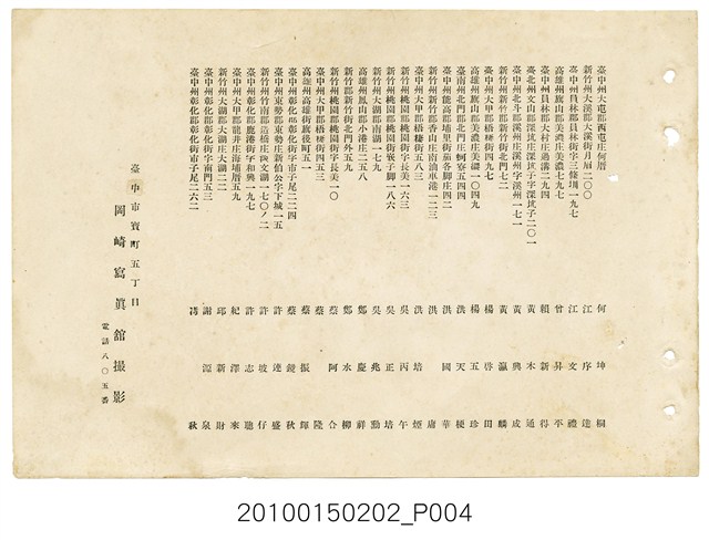 本件為臺中州立臺中商業學校畢業紀念冊,製作時間為大正13年(1924),四孔線裝,黑白印刷,由臺中市岡崎寫真館製作。內容包含教職員、畢業生大頭照、課堂照、校園生活照、教職員名冊等。臺中商業學校(今國立臺中科技大學),前身為1919年創設之「臺灣公立臺中商業學校」,創校初期借當時的「臺灣公立高等普通學校」(今臺中第一高級中學)校舍授課。1921年,臺灣公立臺中商業學校更名為「臺中州立臺中商業學校」,隨後將校址移往臺中州大屯郡北屯庄的臨時校舍內,1927年起新校舍陸續竣工,1929年完成遷校。該校名沿革,如下:1919年,臺灣公立臺中商業學校;1921年,臺中州立臺中商業學校;1945年,臺灣省立臺中商業職業學校;1963年,臺灣省立臺中商業專科學校;1982年,國立臺中商業專科學校;1999年,國立臺中技術學院;2011年,國立臺中科技大學。