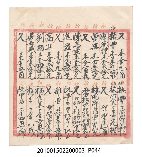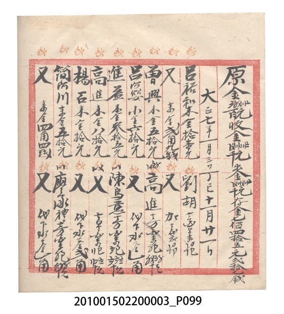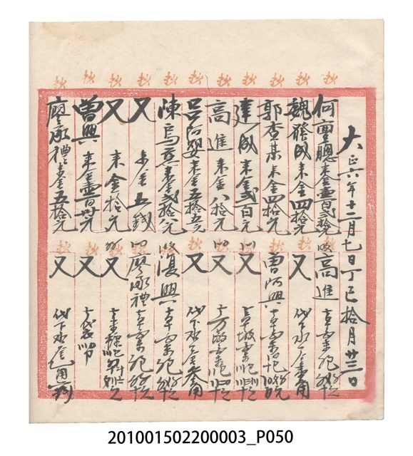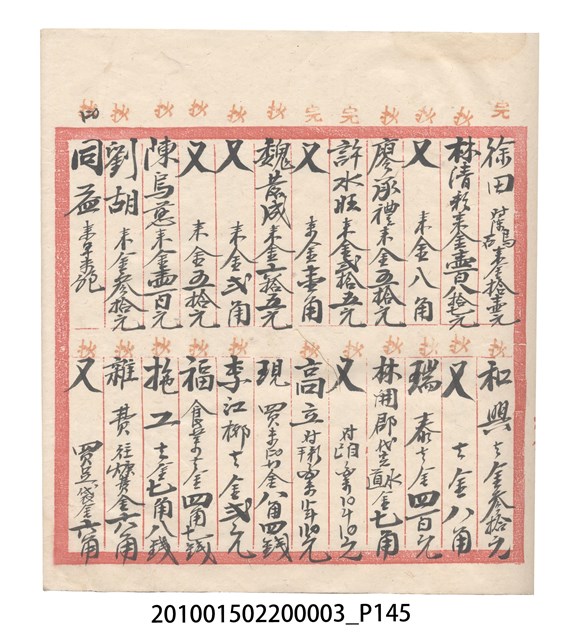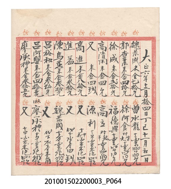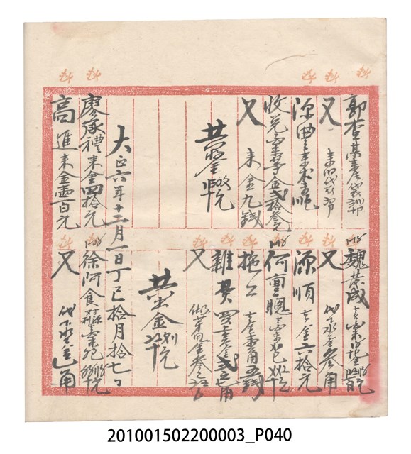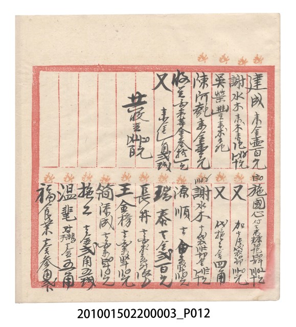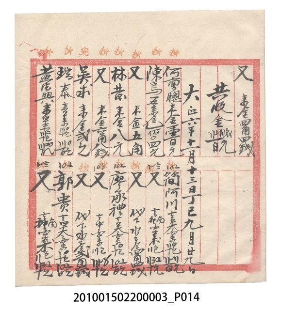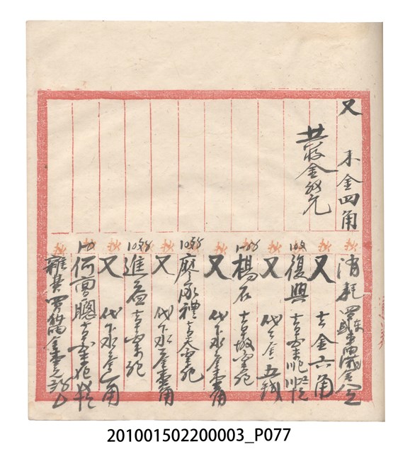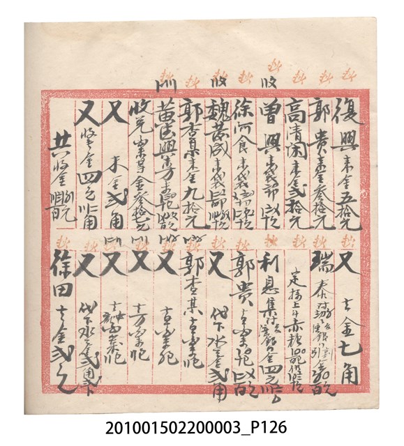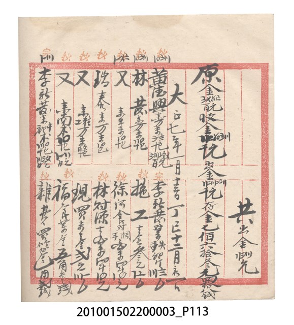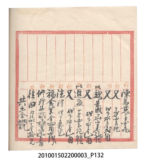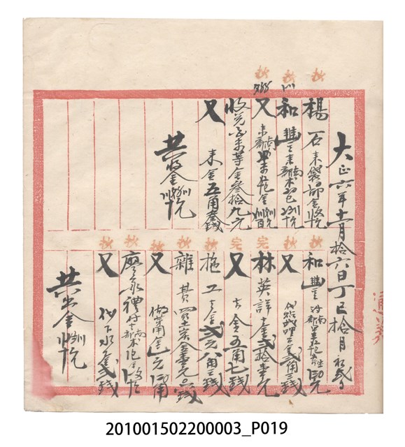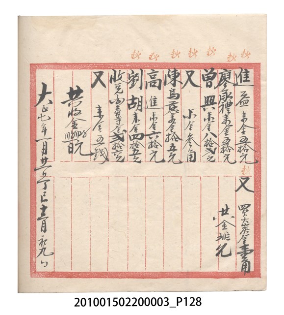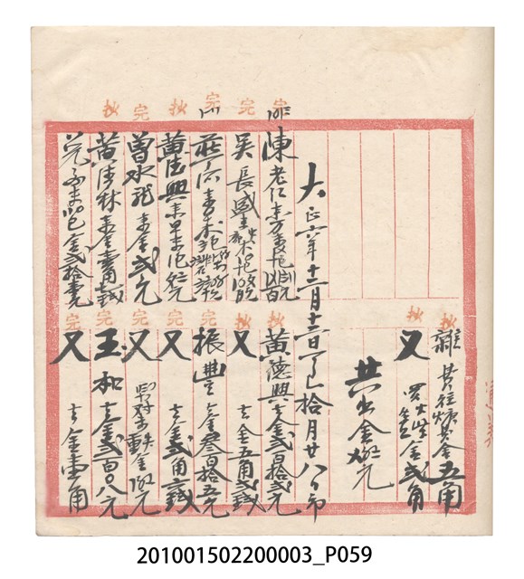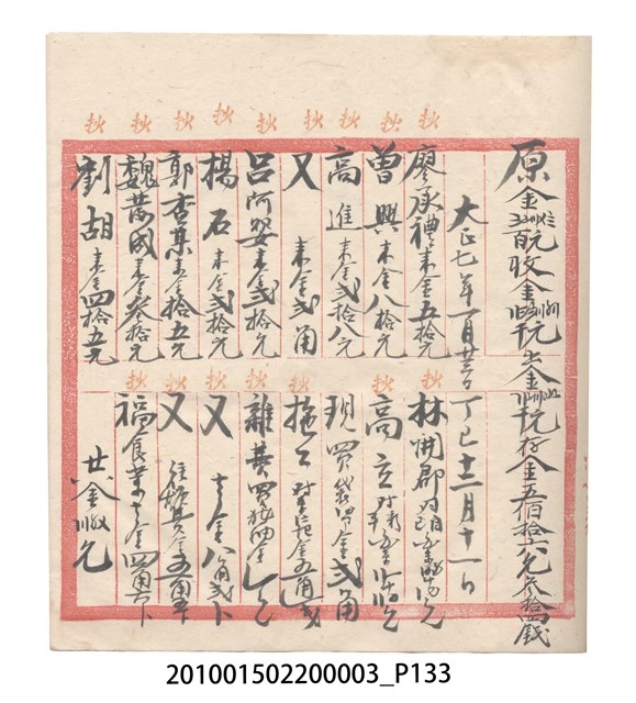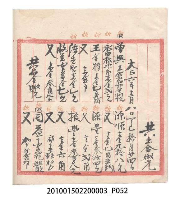 本物件為瑞興商店大正六年丁巳菊月叄部日清,該書以棉線裝訂,封面、封底為藍色,頂邊題有瑞興商店大正六年丁巳菊月叄部日清字樣,內容涵蓋首行瑞興商店大正6年丁巳菊月立叄部日清 承弍部日清尾存金1208元●角4錢。 大正6年11月5日丁巳9月21日大吉利市上欄收入廖承禮、曾興、楊石、進益、簡阿川、呂裕和、郭查某等費用;下欄支出雜費、福食等費用。大正6年11月6日丁巳9月22日上欄收入陳烏石等費用;下欄支出瑞泰、王了等費用。大正6年11月7日丁巳9月23日上欄收入陳烏石等費用;下欄支出陳烏石、同益、黃木火等費用。大正6年11月8日丁巳9月24日上欄收入徐德、廖承禮、曾興等費用;下欄支出張連福、黃德興、黃木火等費用。[夾紙] 本物件為通知書 敬啓者 茲今午配運送去麻袋●●到着望即差收登帳是幸 大正7年1月14日 九芎橋 復興出 瑞興大宝號 [夾紙] 本物件為 1月14日源利棧致瑞興寶號王港 殿賒銀。憑單撥出小朮米弍包、小万米弍包 即付去金並其餘銀項候此十八九日送還是也。[夾紙] 本物件為上欄來金收入;下欄付金支出帳單。 本物件為上欄收入兌南部●●金等費用;下欄支出雜費等費用。