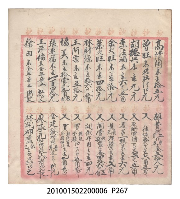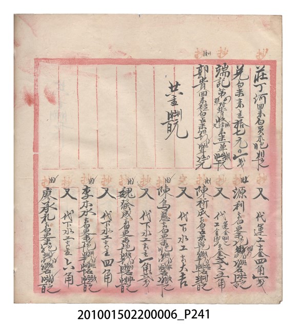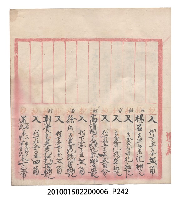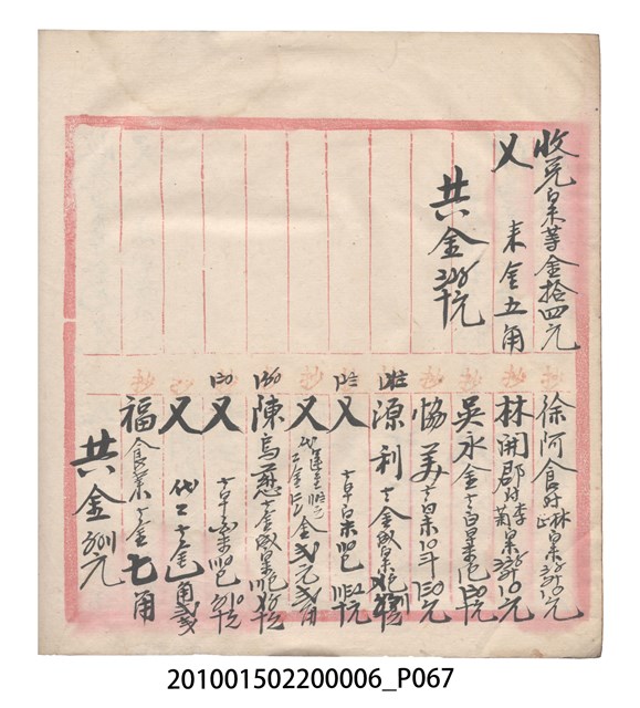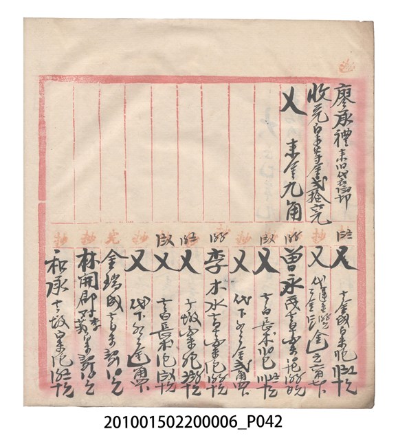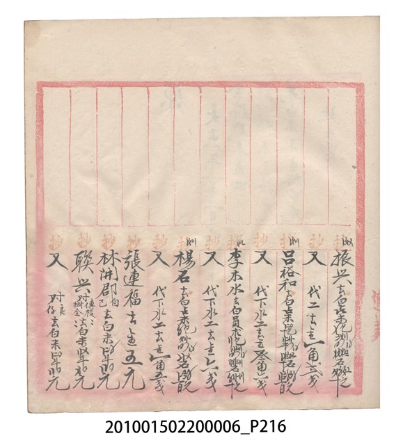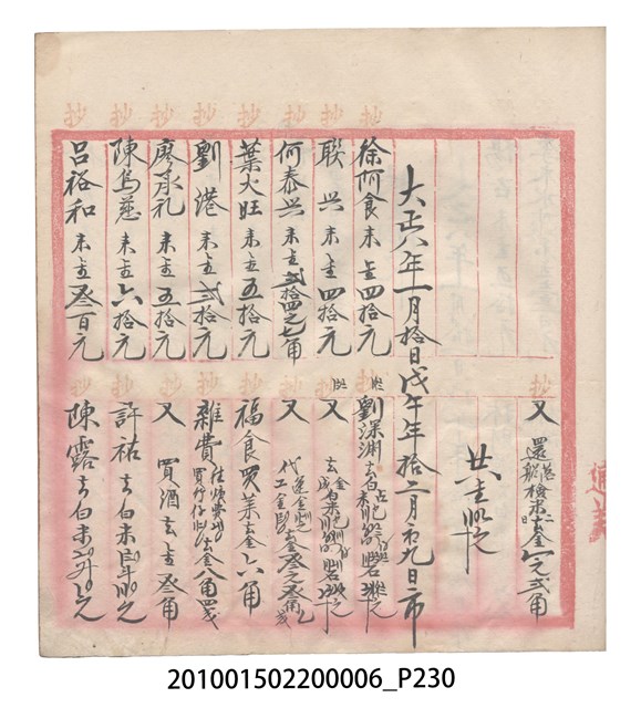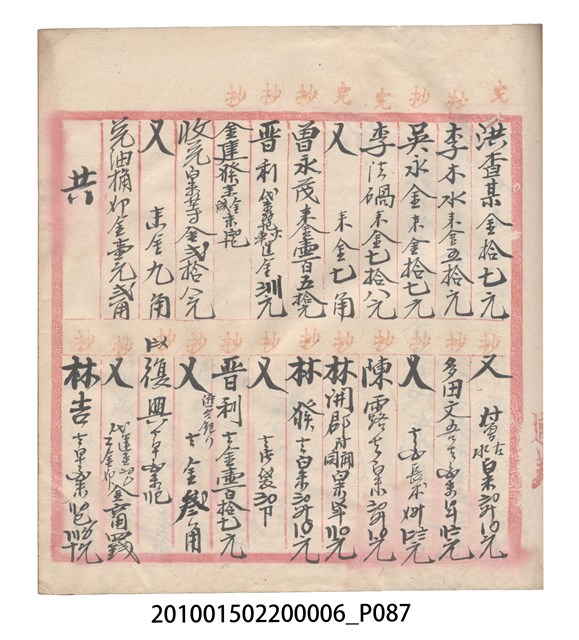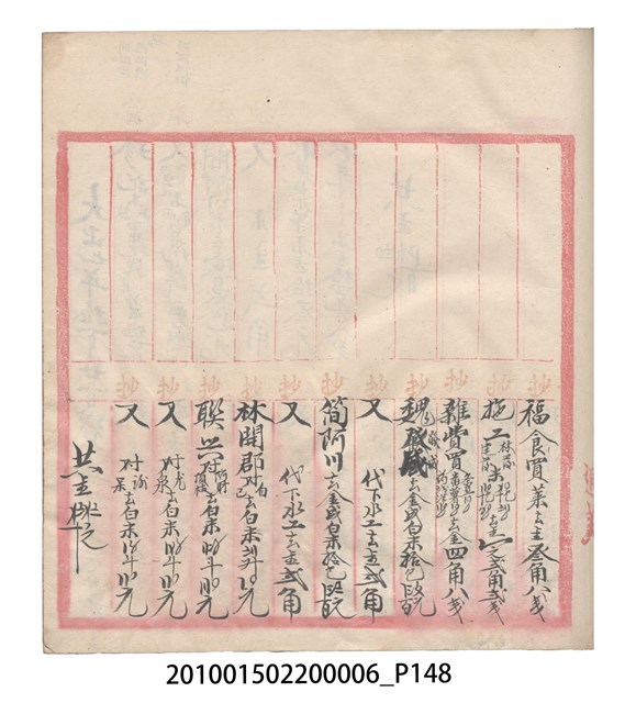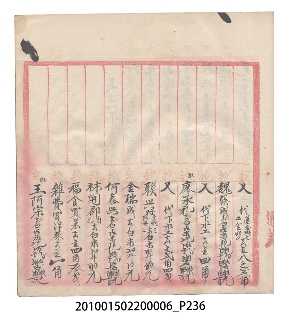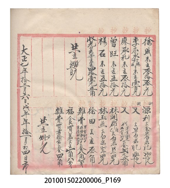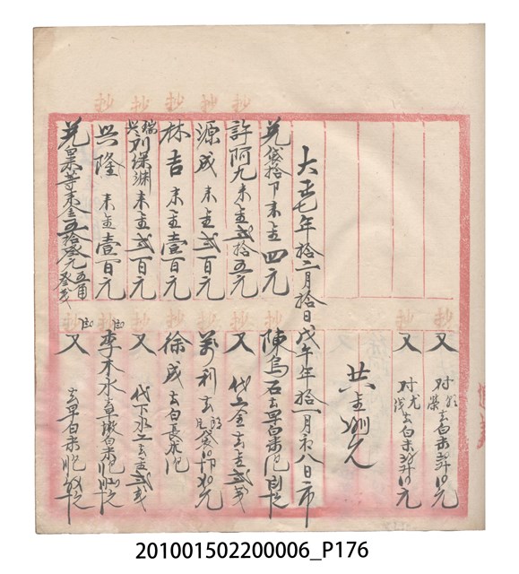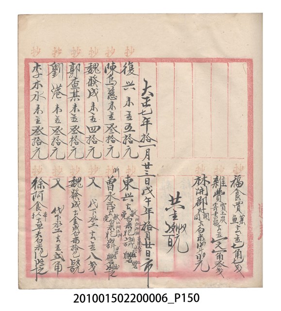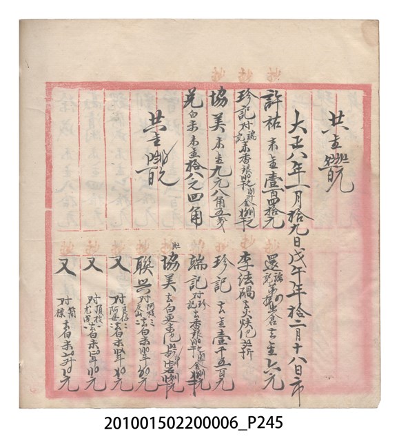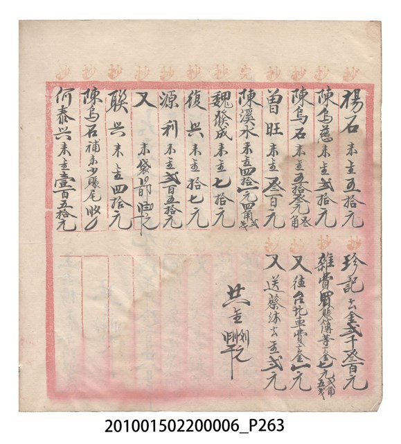本物件為瑞興大正七年戊午瓜月弍部日清,該書以棉線裝訂,封面為藍色,無封底破損,書背破損,頂邊題有瑞興大正七年戊午瓜月弍部日清字樣,內容涵蓋首行瑞興大正七年戊午瓜月立弍部日清 承首部日清尾存金 大正7年8月31日戊午七月念五日大吉利市上欄收入廖承禮、捷順等費用;下欄支出林開郡、和泰興、陳東興、黃德興等費用。大正7年9月1日戊午7月26日上欄收入呂裕和、邱房、許阿九、李木水等費用;下欄支出林財源、雜費、徐阿食、林開郡等費用。大正7年9月2日戊午7月27日上欄收入白献祿、黃德興、裕興、簡阿川等費用;下欄支出協美、駱世安、吳遠等費用。