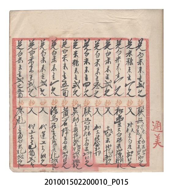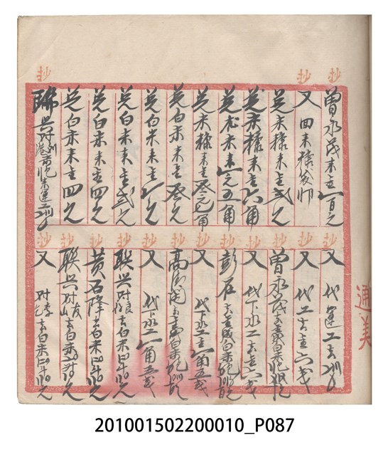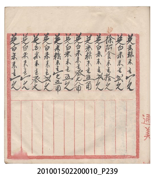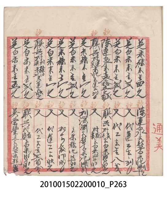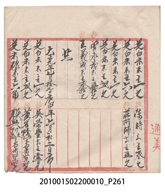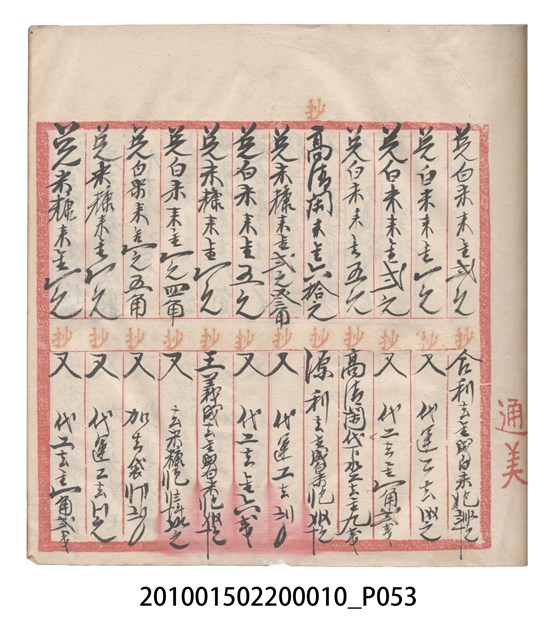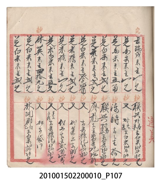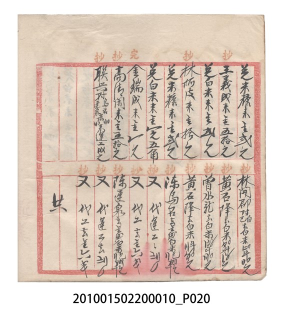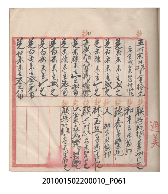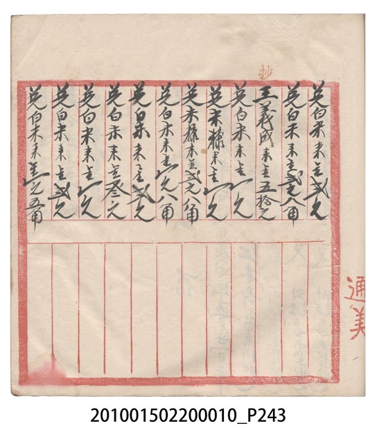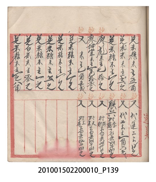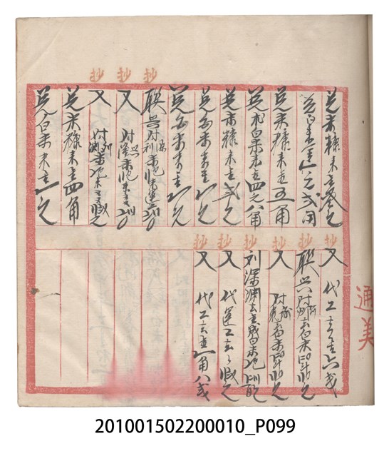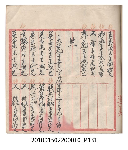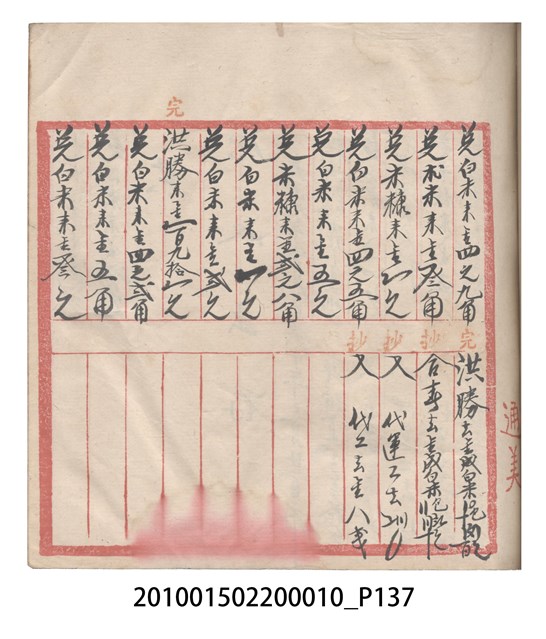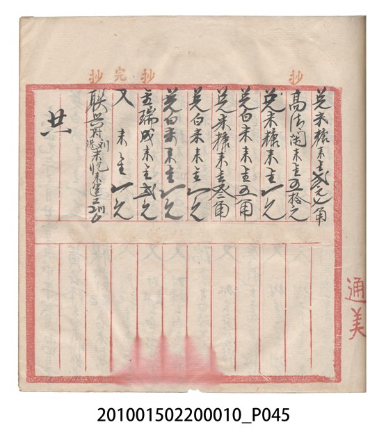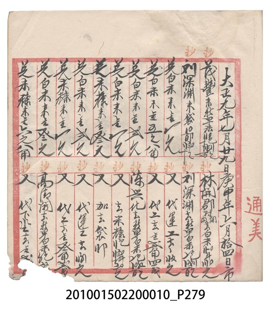 本物件為瑞興大正九年庚申首部日清,該書以棉線裝訂,封面、封底均藍色,封底有蟲蛀破損,頂邊題有瑞興大正九年庚申首部日清字樣,內容涵蓋首行瑞興號大正九年歲次庚申年孟春月立首部日清 承己未年苐叁部日清尾存 大正9年2月20日庚申年元月初一日市上欄共大吉;下欄共大吉。大正9年2月21日庚申年元月初二日市上欄共大吉;下欄支出江和興費用,共吉。大正9年2月22日庚申年元月初三日市上欄收入兌白米費用,共吉;下欄共吉。大正9年2月23日庚申年元月初四日市上欄收入兌白米費用;下欄支出林財源、江和興共吉。大正9年2月24日庚申年元月初五日市上欄收入兌●米、泉德費用;下欄支出拖工費用。大正9年2月25日庚申年元月初六日市上欄收入兌白米、江和興等費用;下欄支出江和興、聯興等費用。大正9年2月26日庚申年元月初七日市上欄收入兌糙米、兌白米、兌米糠費用;下欄支出聯興、吳榮豐、郭成利等費用。大正9年2月28日庚申年元月初九日市上欄收吳榮豐、兌米糠、王義成、兌白米等費用;下欄支出林氏玉燕、聯興等費用。大正9年2月29日庚申年元月初十日市上欄收入兌白米、兌米糠等費用;下欄支出聯興、吳榮豐、林開郡等費用。大正9年8月11日庚申年六月廿七日市上欄收入兌白米、兌米糠等費用;下欄支出林阿嬰、聯興等費用。原收出存。 承過苐弍部日清簿。