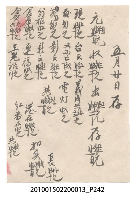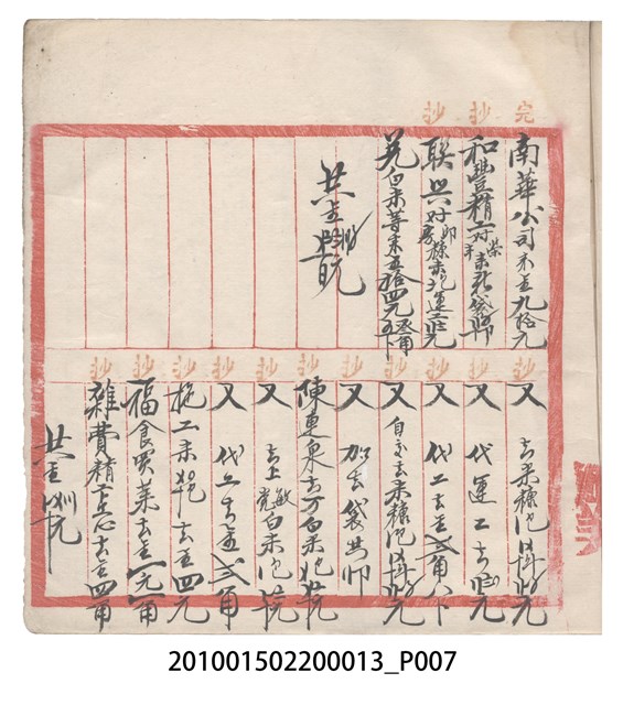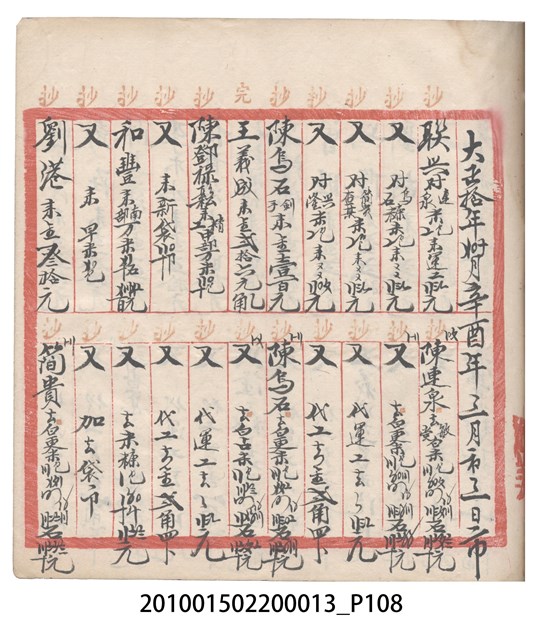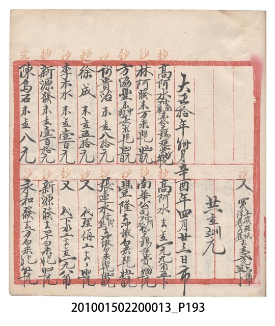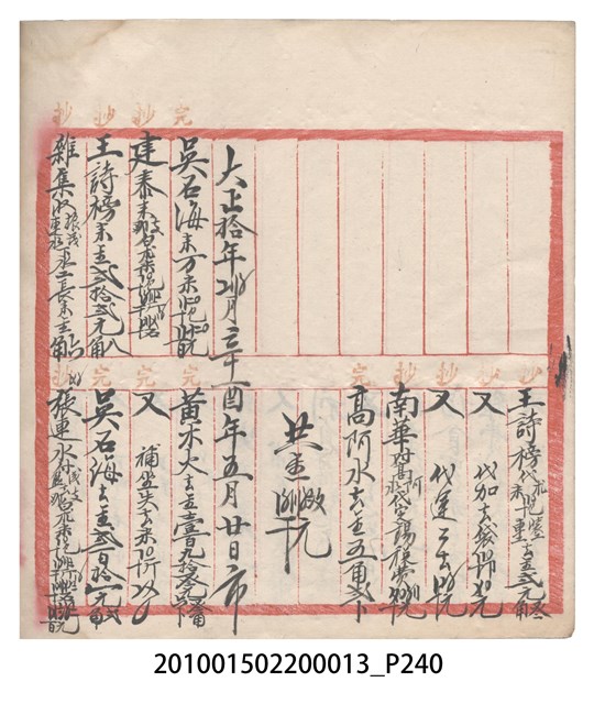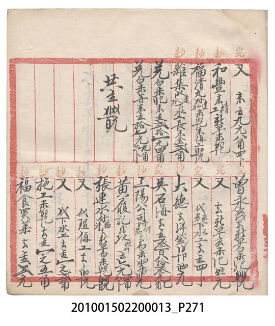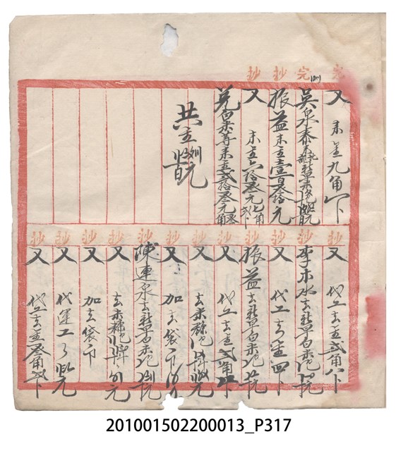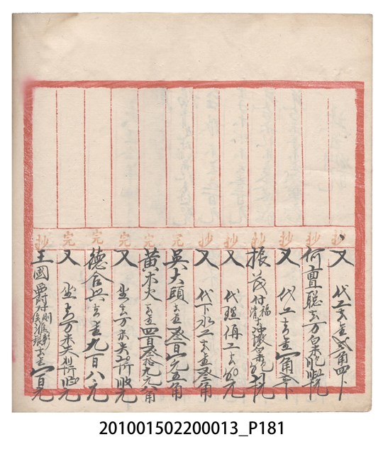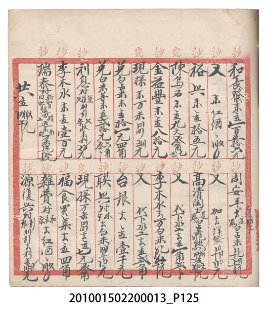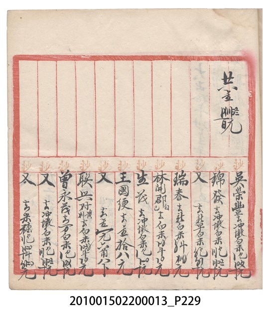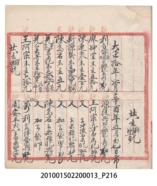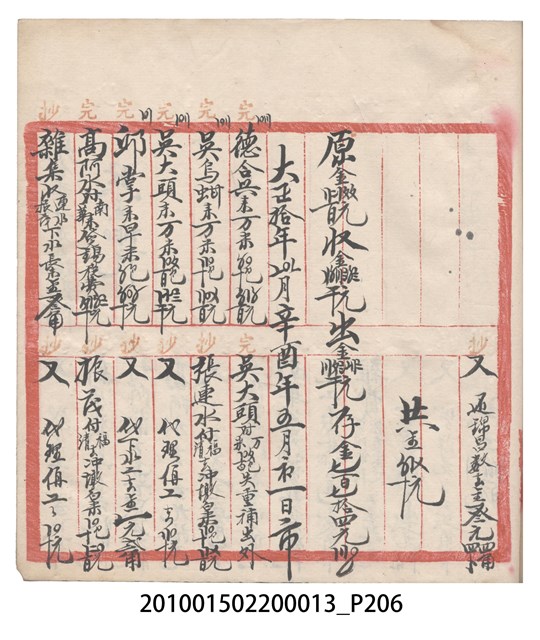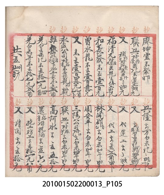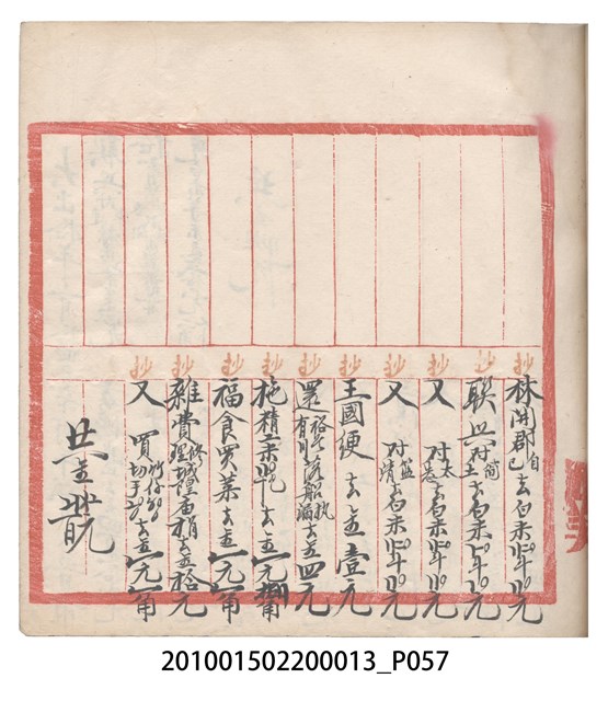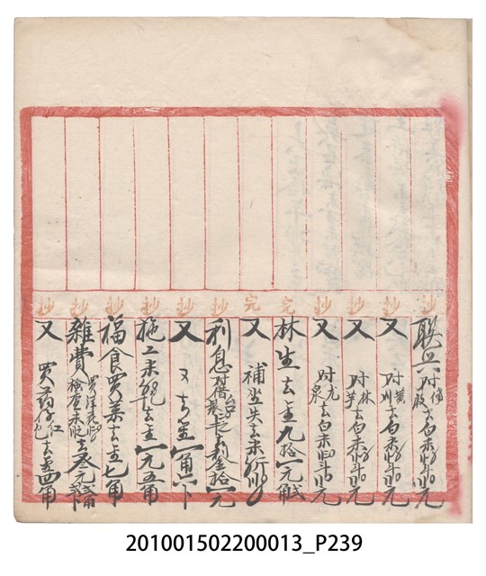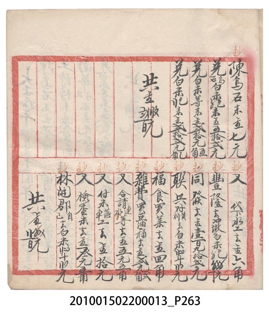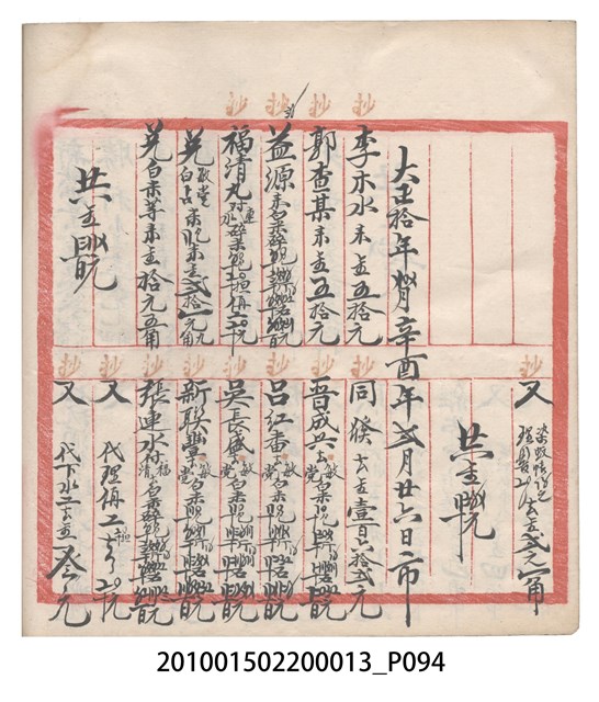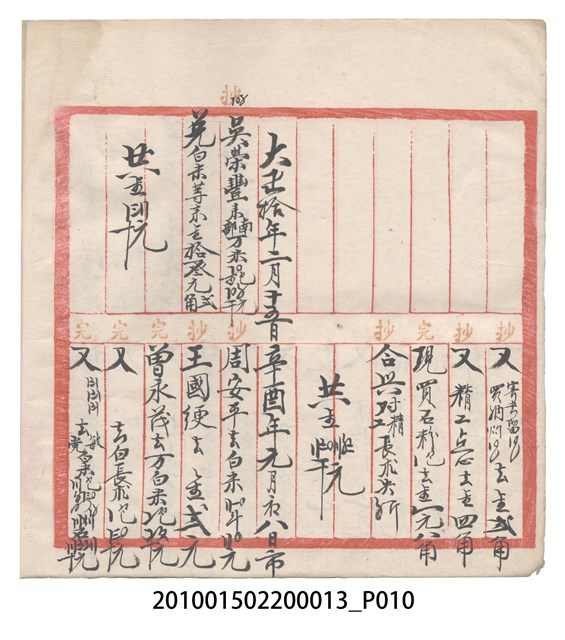 本物件為瑞興大正拾年辛酉苐首部日清,該書以棉線裝訂,封面、封底均藍色,頂邊題有瑞興大正拾年辛酉苐首部日清字樣,內容涵蓋首行瑞興號大正拾年歲次辛酉年孟春月立首部日清 承庚申年苐弍部日清尾存金499元●● 大正10年2月8日辛酉年元月初一日市上欄收入兌白米費用;下欄共吉。大正10年2月9日辛酉年元月初二日市上欄收入兌白米費用;下欄共吉。大正10年2月11日辛酉年元月初四日市上欄收入瑞泰、兌白米等費用;下欄支出彭在、雜費等費用。大正10年2月12日辛酉年元月初五日市上欄收入郭查某、張呆、邱房等費用;下欄支出郭查某、張呆、高清閑等費用。總計原金、收金、出金、存金 承過苐弍部日清簿。