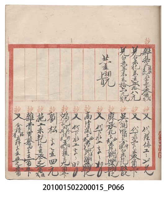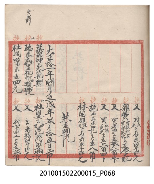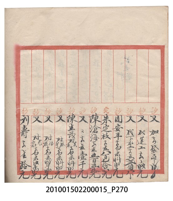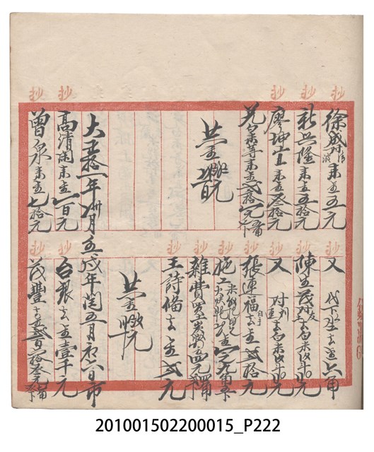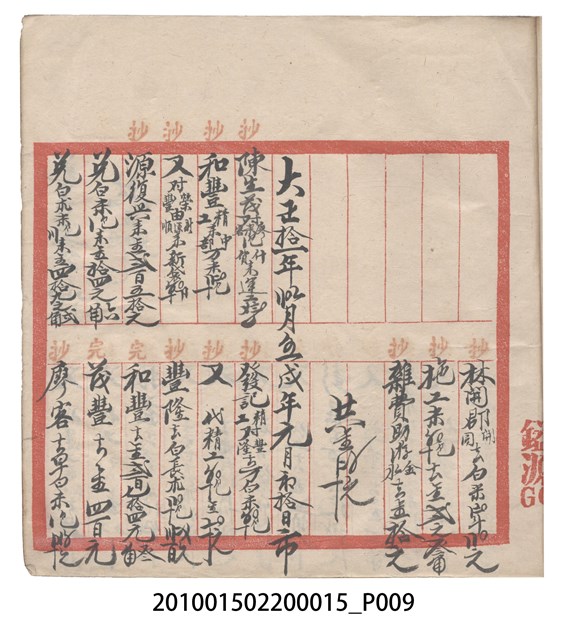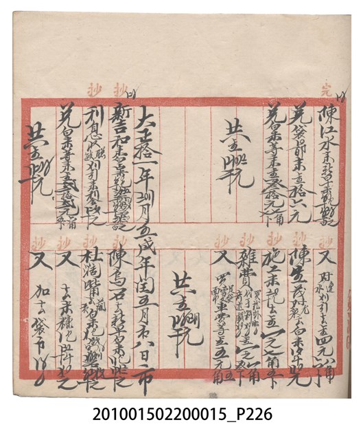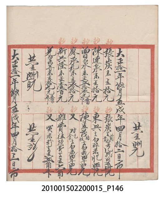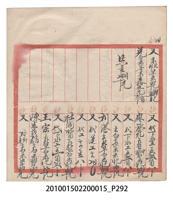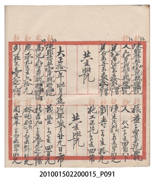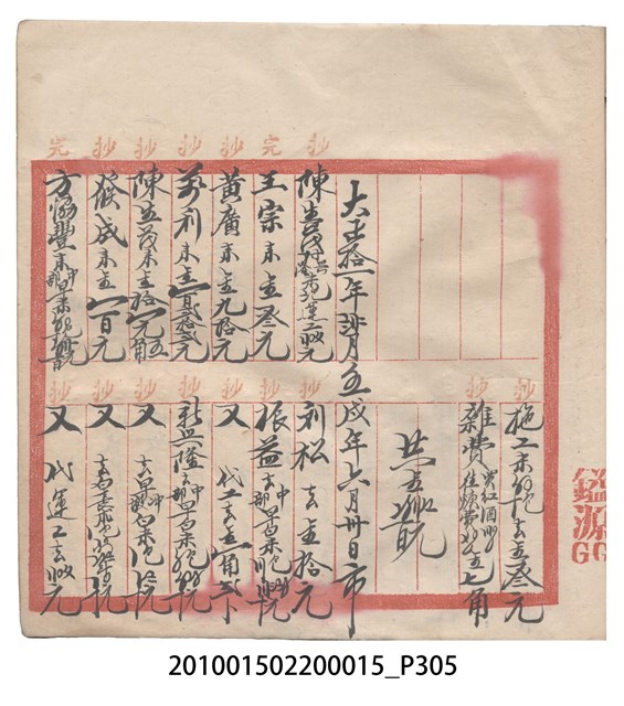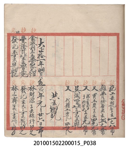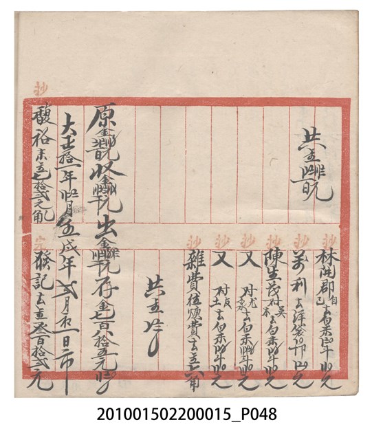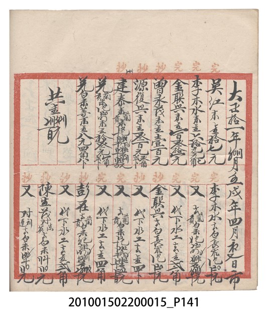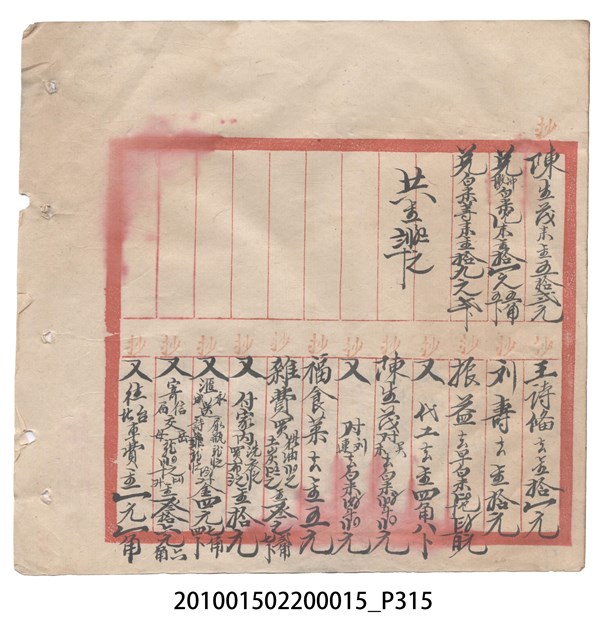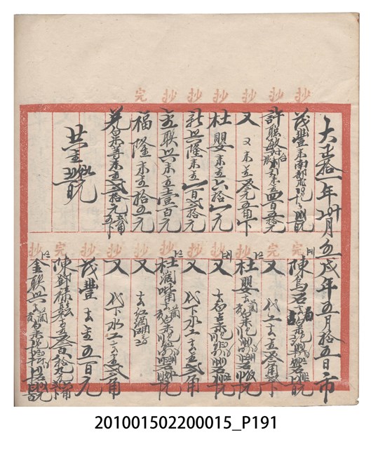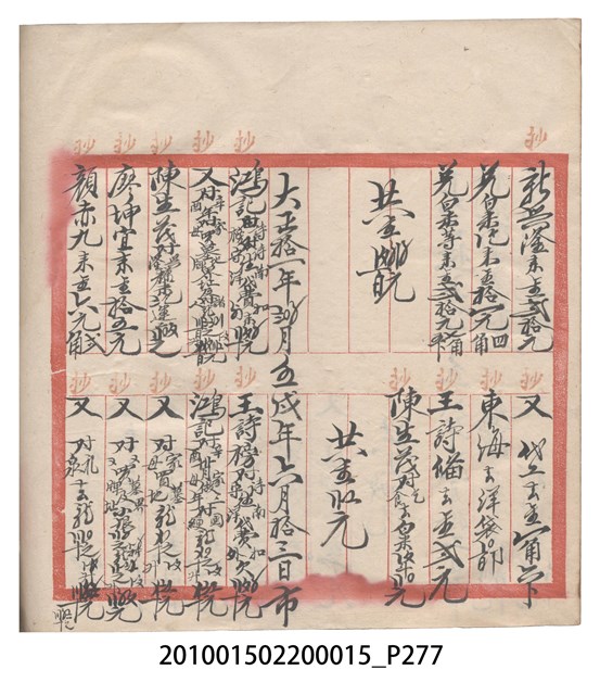 本物件為瑞興大正拾弍年癸亥苐首部日清,該書以棉線裝訂,封面、封底藍色,頂邊題有瑞興大正拾弍年癸亥苐首部日清字樣,內容涵蓋首行瑞興號大正拾弍年癸亥年孟春立首部日清 承壬戌年苐叁部日清 大正12年2月17日癸亥年元月初弍日大吉利市上欄收入彭在等費用;下欄支出林細、呂江番等費用。大正12年2月19日癸亥年元月初四日市上欄收入馥裕、陳烏石、呂阿慶等費用;下欄支出瑞泰、四元篤、拖工等費用。大正12年2月25日癸亥年元月初拾日市上欄收入黃氏粉、兑百米等費用;下欄支出呂江番、雜費等費用。大正12年2月26日癸亥年元月十一日上欄收入瑞泰、兑百米等費用;下欄支出郭查某、新興隆、曾泉、呂江番、拖工等費用。總計原、收金、出金、存 承過苐弍部日清簿。