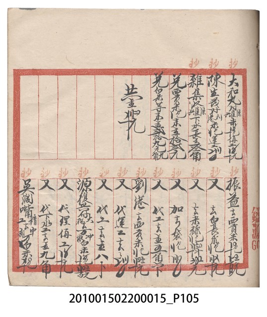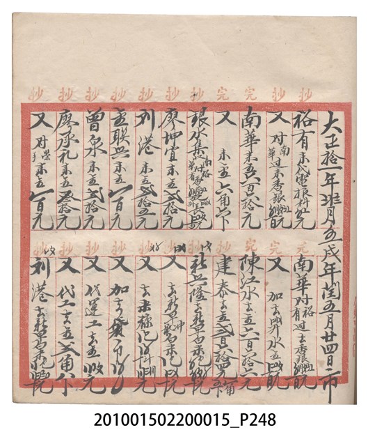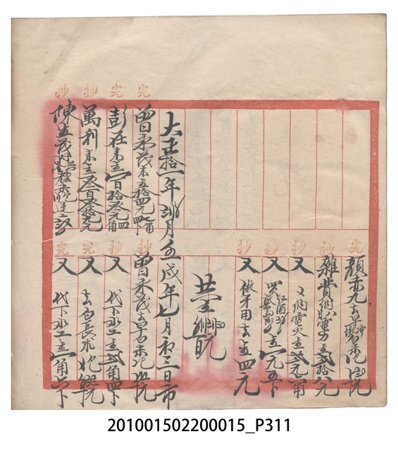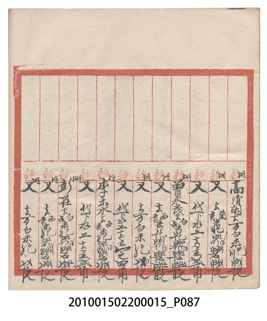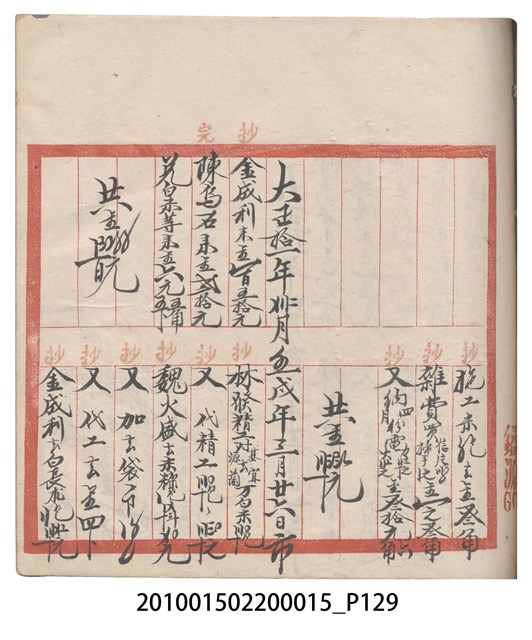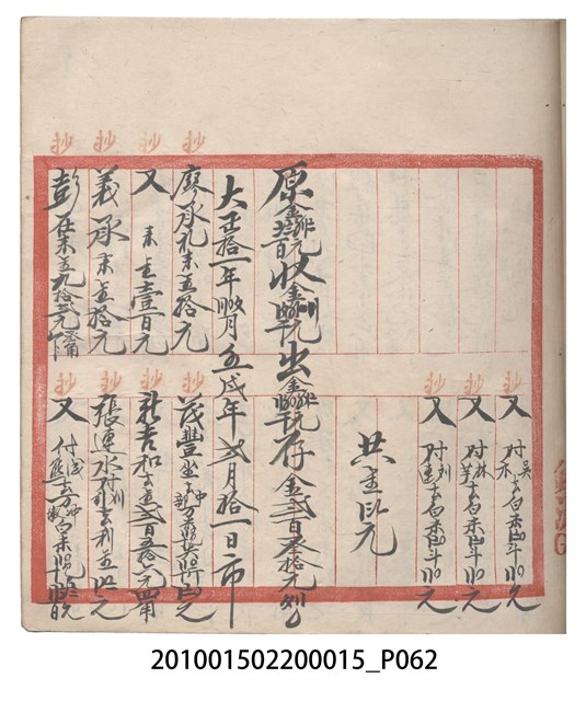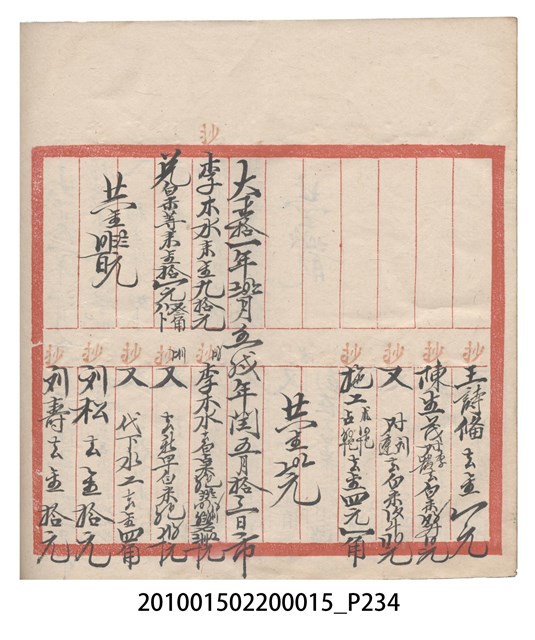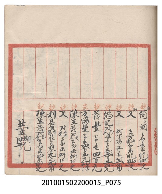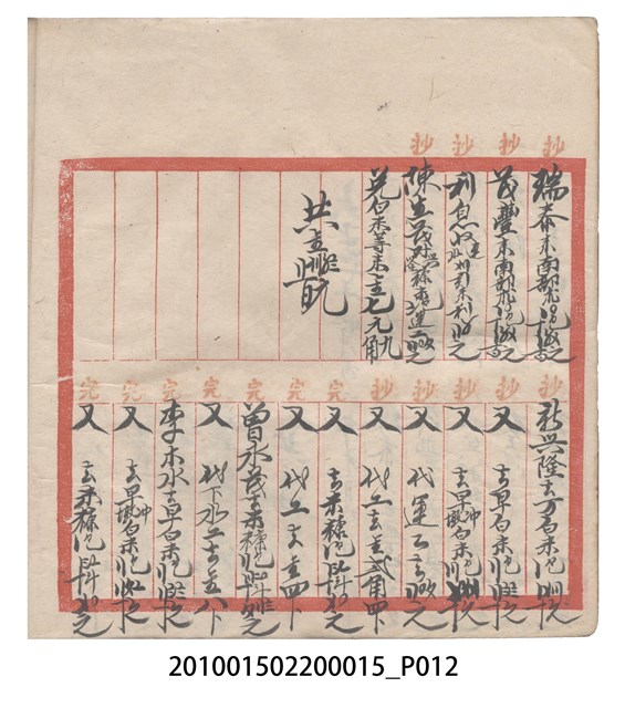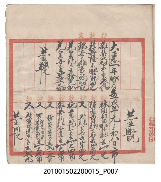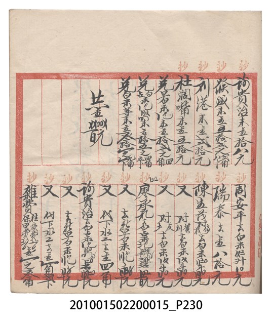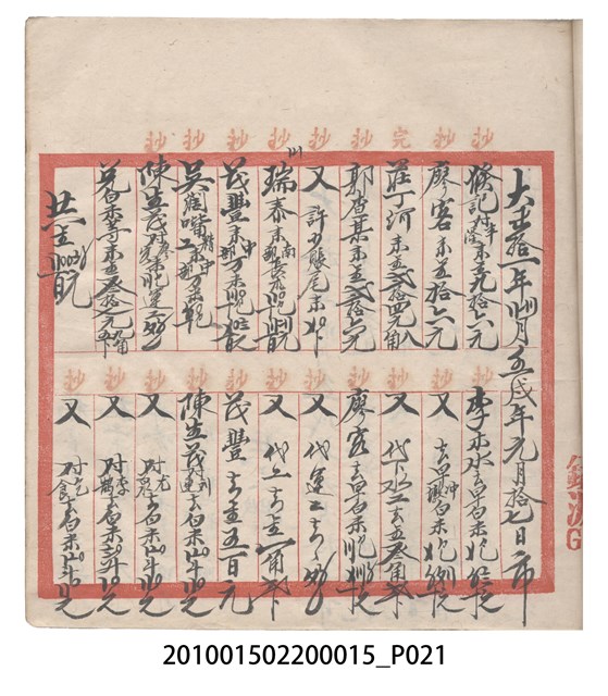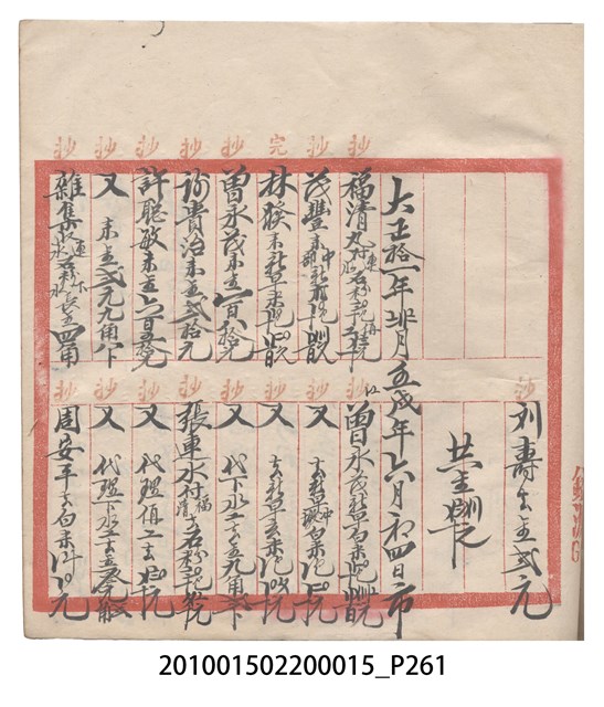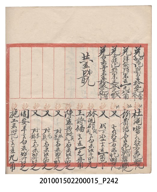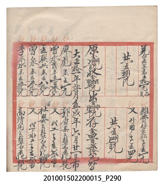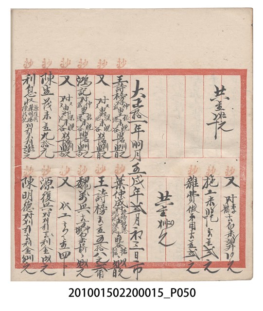 本物件為瑞興大正拾弍年癸亥苐首部日清,該書以棉線裝訂,封面、封底藍色,頂邊題有瑞興大正拾弍年癸亥苐首部日清字樣,內容涵蓋首行瑞興號大正拾弍年癸亥年孟春立首部日清 承壬戌年苐叁部日清 大正12年2月17日癸亥年元月初弍日大吉利市上欄收入彭在等費用;下欄支出林細、呂江番等費用。大正12年2月19日癸亥年元月初四日市上欄收入馥裕、陳烏石、呂阿慶等費用;下欄支出瑞泰、四元篤、拖工等費用。大正12年2月25日癸亥年元月初拾日市上欄收入黃氏粉、兑百米等費用;下欄支出呂江番、雜費等費用。大正12年2月26日癸亥年元月十一日上欄收入瑞泰、兑百米等費用;下欄支出郭查某、新興隆、曾泉、呂江番、拖工等費用。總計原、收金、出金、存 承過苐弍部日清簿。